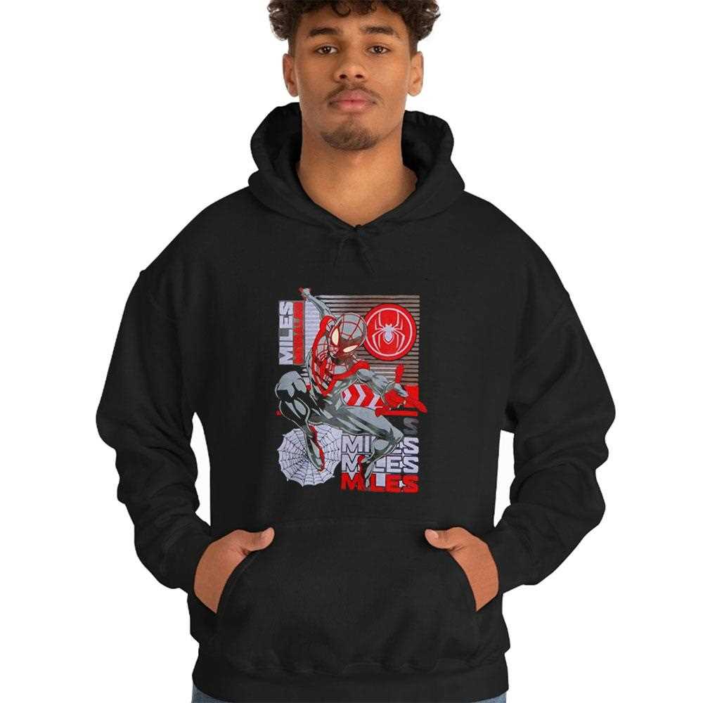 Swing into action with this spectacular Miles Morales tribute shirt. The graphic features a collage of Miles in his signature black and red Spider-Man suit, capturing him in various dynamic poses. The design utilizes a “bootleg vintage” aesthetic, with faded textures and oversized typography that gives it the look of a well-loved thrift store find. The red accents highlight his unique spider powers and electric venom blasts. It is the ultimate streetwear piece for fans of the Spider-Verse. Unleash your inner hero and cop the Miles Morales Spider-man Miles Vintage Tee for your collection!. T-shirt !