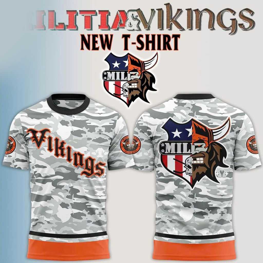 Militia and Vikings Hockey 2026 New Camo Hoodie Tee