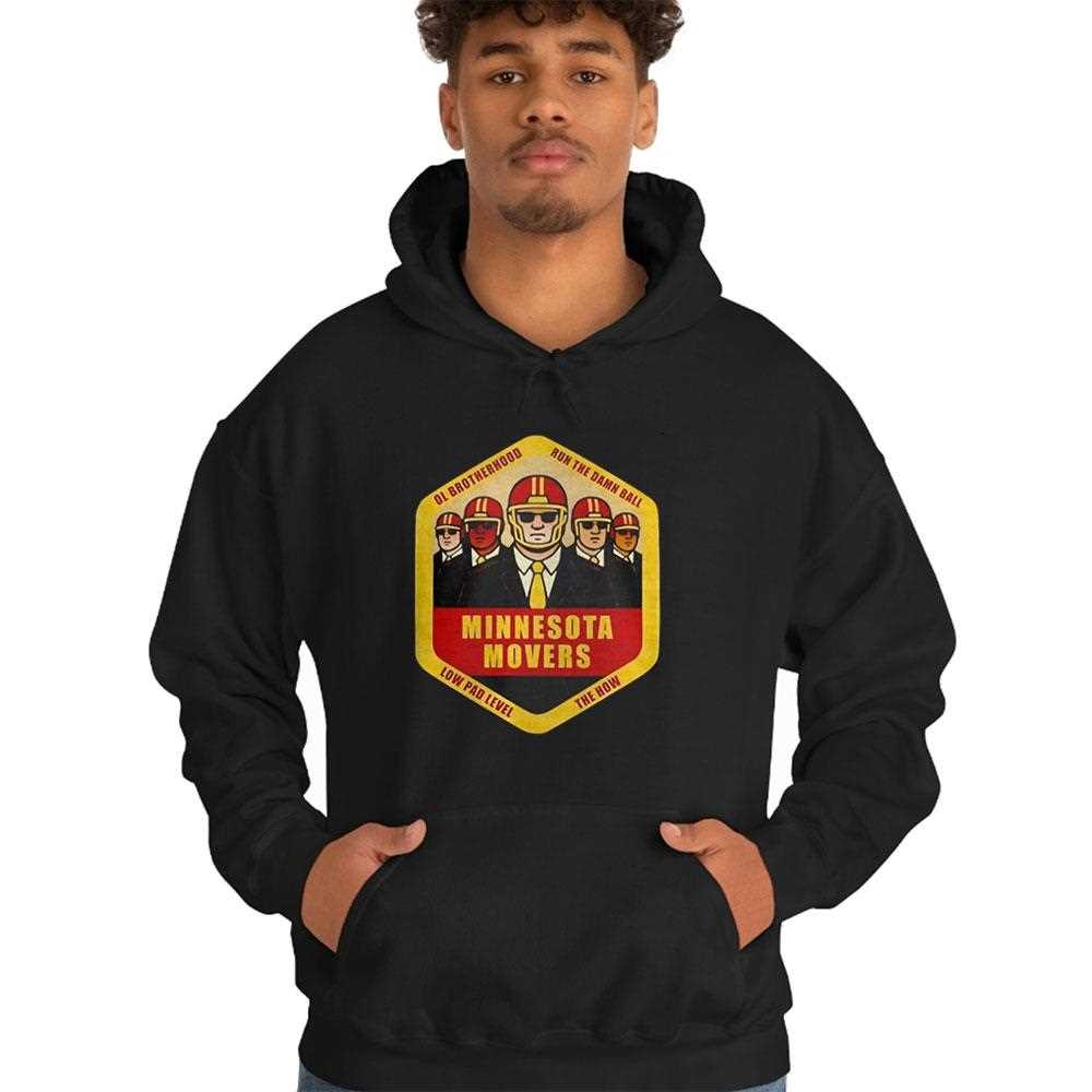 A powerful statement for the big men in the trenches. This “MINNESOTA MOVERS” t-shirt is a tribute to the offensive line, the “OL Brotherhood.” With the motto “RUN THE DAMN BALL” and a focus on “LOW PAD LEVEL,” it’s the perfect shirt for the fan who appreciates old-school, smash-mouth football. It all starts up front. Show your respect for the guys who do the dirty work. A must-have for any true student of the game..