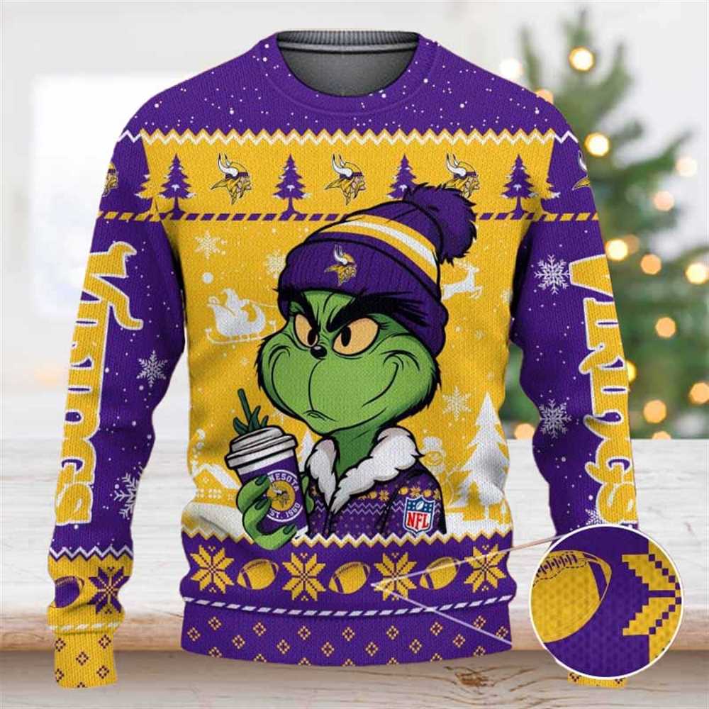 Minnesota Vikings The Grinch Drink Coffee Ugly Christmas Sweater