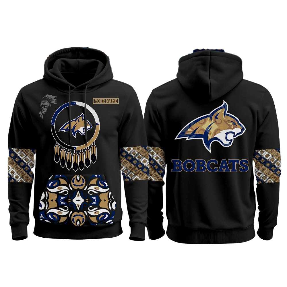 > Connect with the spirit of the Bobcats and honor a rich cultural legacy with the Montana State Bobcats Native American Heritage Month Hoodie. This exclusive design artfully merges the vibrant blue and gold of the Bobcats with intricate, respectfully inspired Native American patterns. The central design often features a stylized bobcat, rendered with an artistic flair that incorporates traditional motifs such as dreamcatcher elements, arrows, or symbolic geometric shapes, all harmoniously integrated with the team’s logo. These patterns often tell a story of agility, wisdom, and a deep connection to the land and its ancient inhabitants. The overall aesthetic is one of dynamic energy and thoughtful reverence, making this hoodie a truly unique piece of apparel. Crafted from premium, comfortable fabric, it’s ideal for showing your allegiance to the Bobcats while also celebrating the profound depth of Native American heritage. Perfect for game days, campus strolls, or casual wear, this hoodie is a conversation starter. Leap into action and celebrate dual passions! Order your Montana State Bobcats Native American Heritage Month Hoodie now and wear a masterpiece of team and cultural pride!. Our Montana State Bobcats Native American Heritage Month Hoodie meets all of your needs: it’s warm and cozy, lightweight and roomy, and built to last. It features dropped shoulders and a standard fit to offer a high level of comfort and ease of movement.
