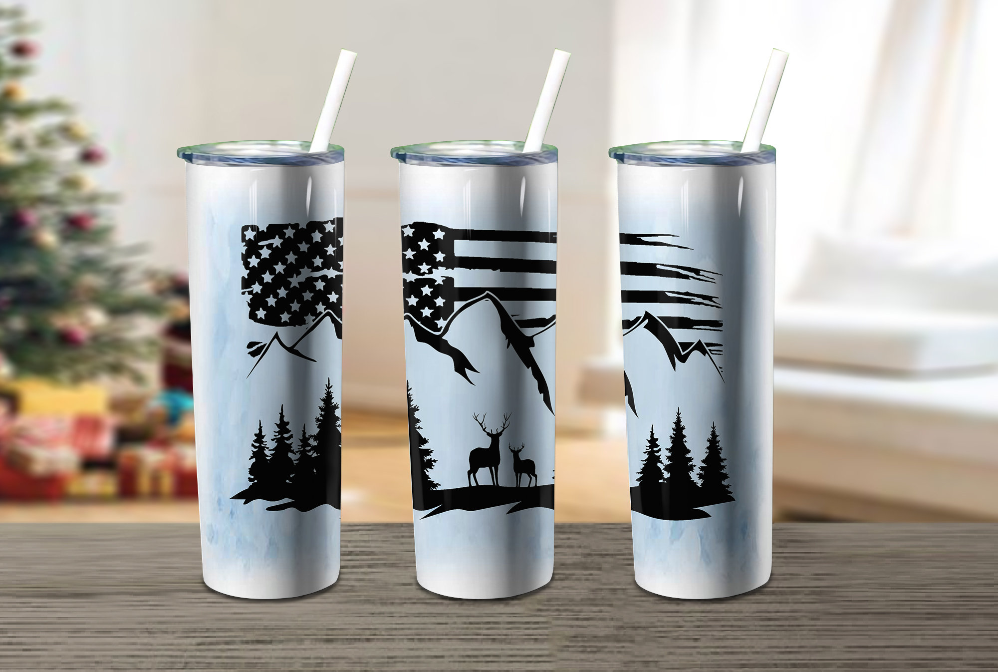 Mountain Deer Campingdeer Flag Skinny Tumbler