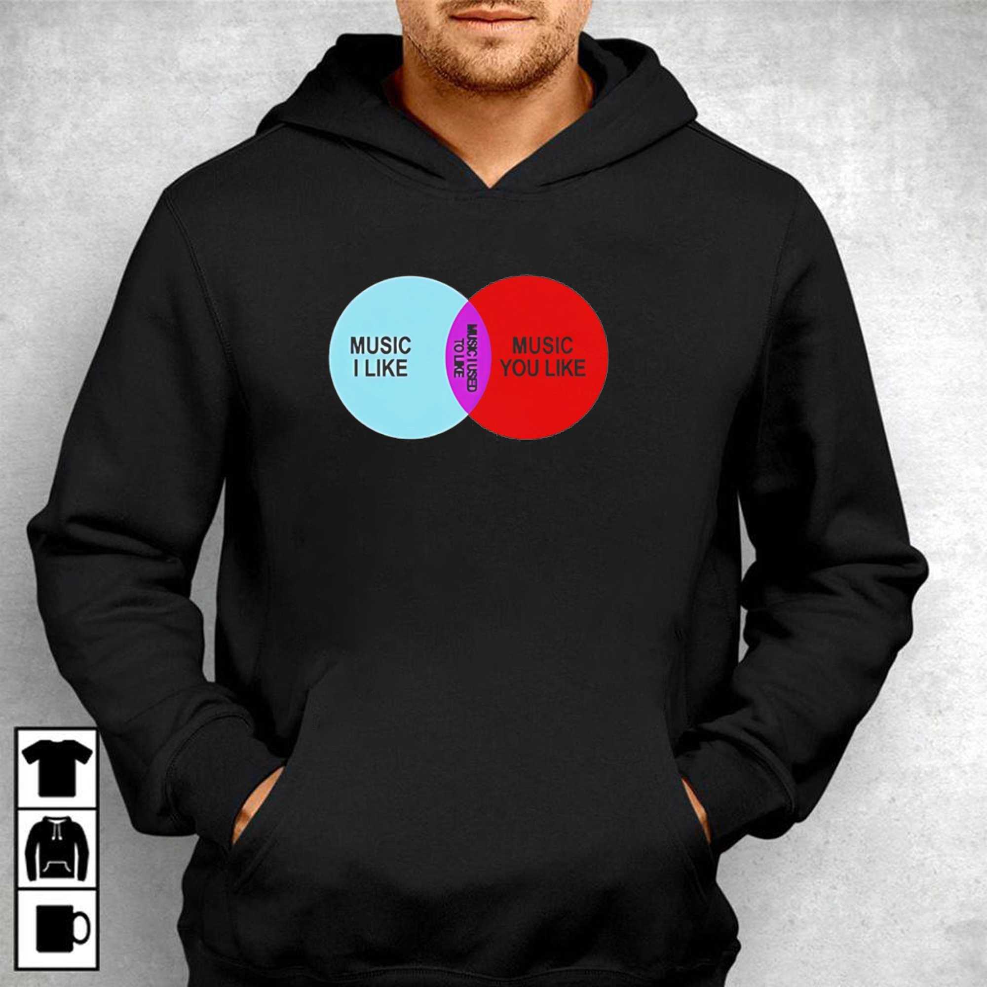 Begin with “Music I Like Music You Like Tee” and get ready to wear your evolving taste on your sleeve! This clever design showcases a humorous Venn diagram illustrating the universal truth of musical evolution. On the left, a calming light blue circle proudly declares “MUSIC I LIKE” in bold black text, representing your current, impeccable preferences. To its right, a vibrant red circle boldly states “MUSIC YOU LIKE,” acknowledging the mainstream and perhaps less refined tastes of others. The genius lies in their overlap: a rich purple section where the vertical text “MUSIC I USED TO LIKE” perfectly captures that nostalgic, sometimes embarrassing, phase we all went through. It’s a witty conversation starter, a nod to personal growth, and a subtle commentary on how our playlists mature – or don’t.