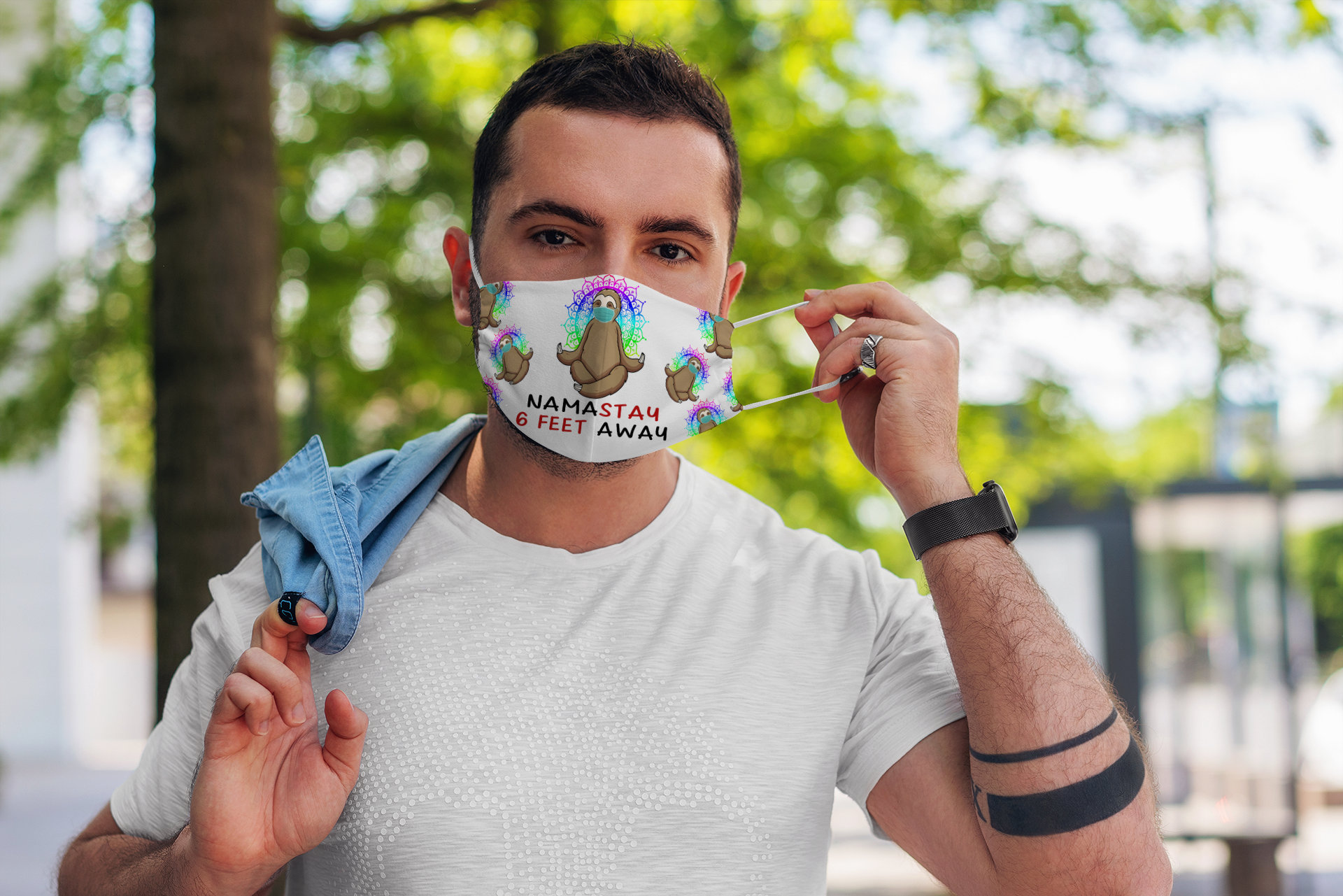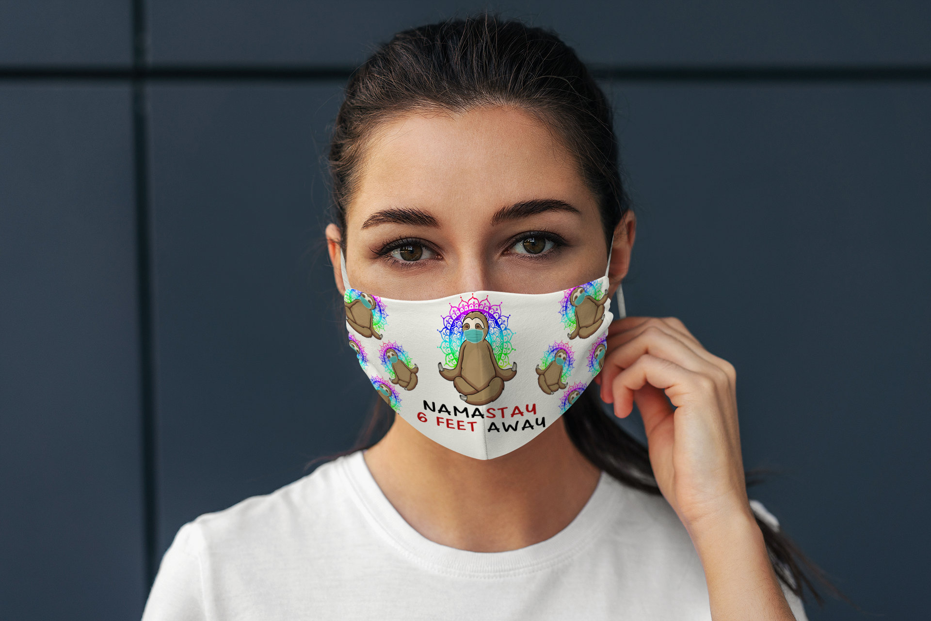 Namastay 6 Feet Away Pun Sloth Meditation Nirvana Yoga Lover Face Mask