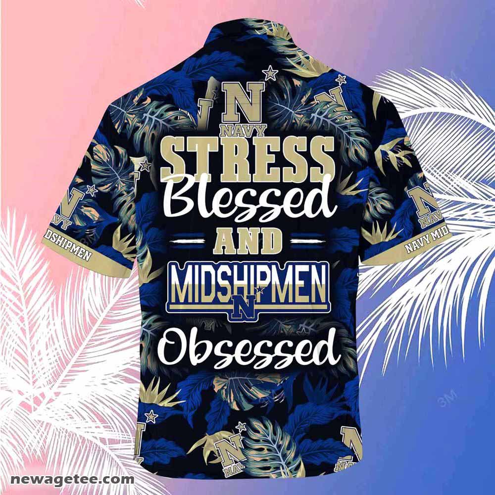 Navy Midshipmen Summer Beach Hawaiian Shirt Stress Blessed Obsessed