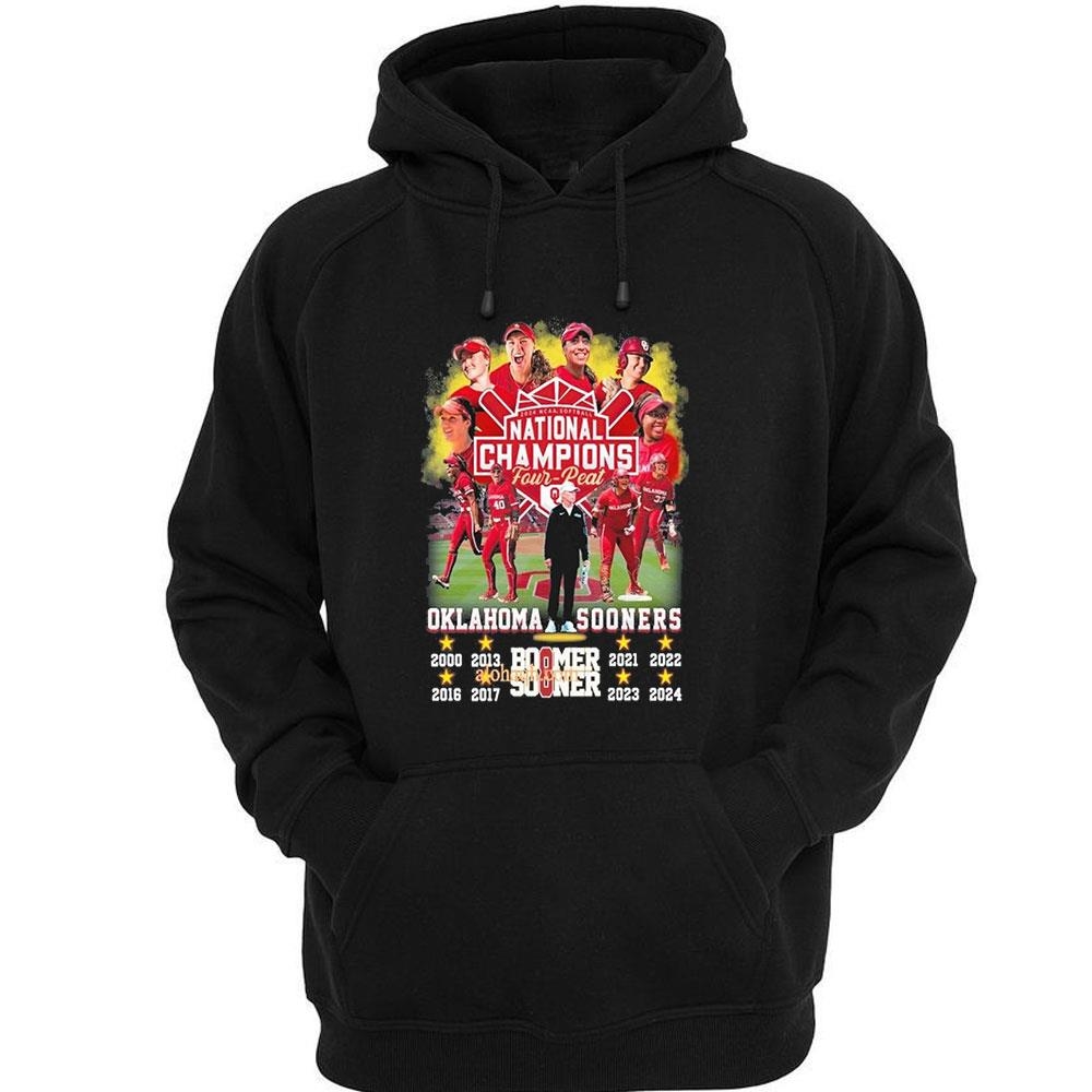 The “Boomer Sooner” faithful have every reason to celebrate this historic achievement. The team’s unwavering commitment to excellence has paid off, and their fans can proudly wear the 2024 NCAA Softball National Champions Four Peal Oklahoma Sooners Boomer Sooner shirt as a testament to their team’s unparalleled success..