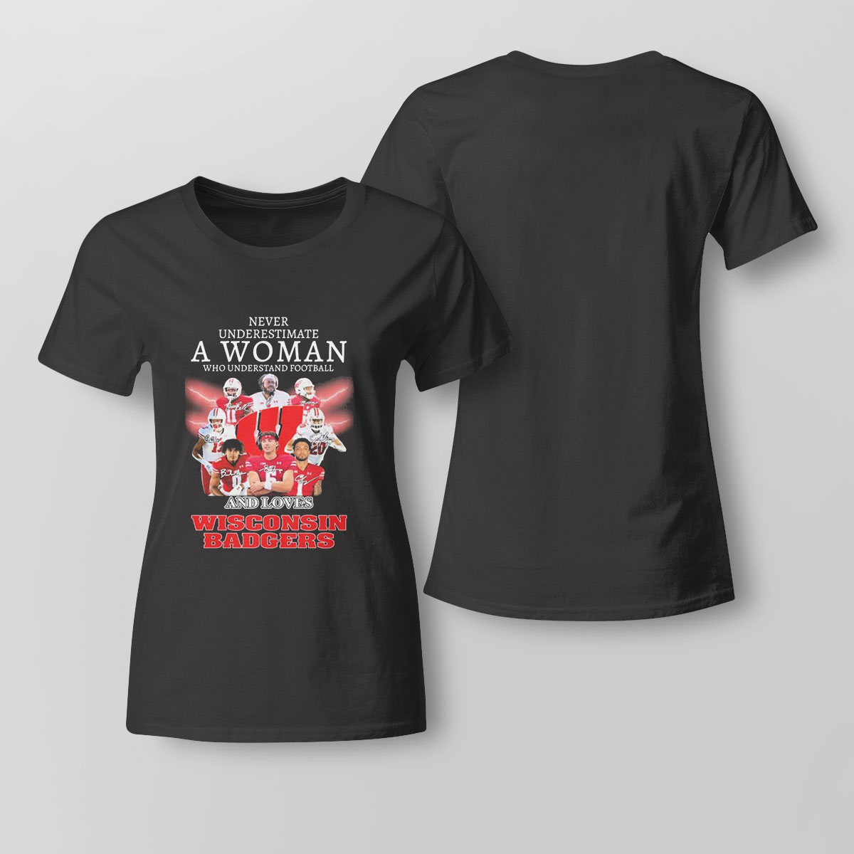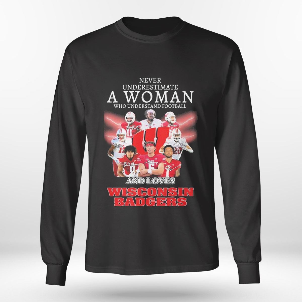 Never Underestimate A Woman Who Understands Basketball A Love Wisconsin Badgers Shirt Longsleeve T-shirt is a stylish, comfy shirt. Made of 100% cotton, it is cool and soft and keeps you cool in summer days. This edgy shirt comes in different colors, but the black stands out the most and matches with everything. It has many uses like casual wear, party wear, office wear and much more. Product details: