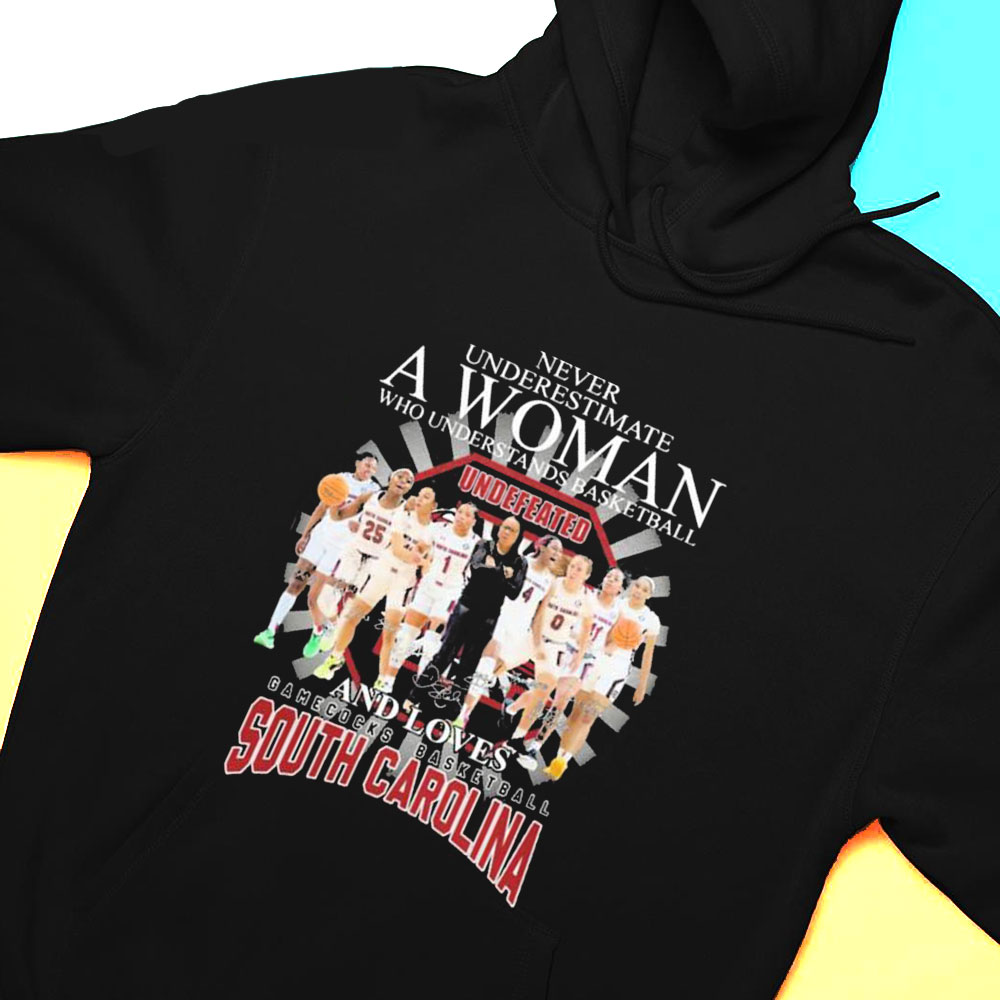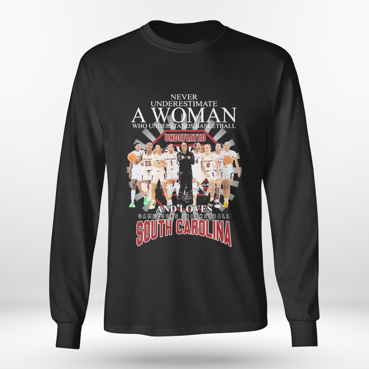 If you’re searching for a Never Underestimate A Woman Who Understate Basketball And Loves Gamecocks South Carolina T-shirt that can offer both a soft feel and breathability to keep you comfortable on sweltering summer days, look no further. Our 100% cotton T-shirt is the answer to your wardrobe woes. Made from soft, breathable cotton, it will keep you comfortable and chic throughout the season. Not only is it easy to wear, but it’s also easy to care for – simply toss it in the washing machine and dry it on low heat, and it will look brand new. It’s also an excellent option for those with sensitive skin, thanks to its natural hypoallergenic properties. You don’t have to take our word for it – give it a try and see for yourself! Purchase your cotton T-shirt today and add a touch of comfort and style to your casual or dressed-up looks. Don’t wait any longer, add it to your cart and experience the benefits of our 100% cotton T-shirt !