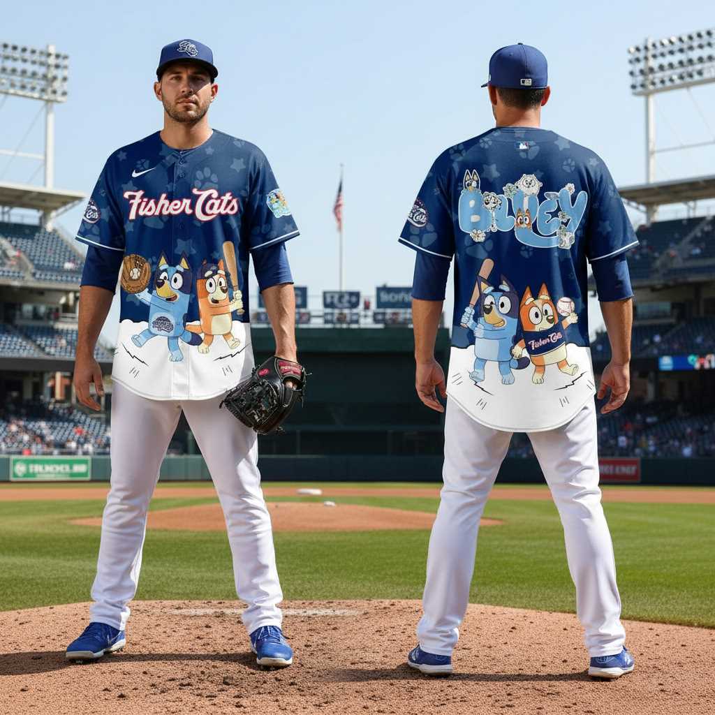 Don’t miss your chance to own a piece of this special collaboration! The New Hampshire Fisher Cats Bluey Night Jersey is more than just apparel; it’s a statement of fandom and fun. Perfect for collectors, devoted fans, or anyone looking for a distinctive and comfortable jersey, grab yours today and celebrate your favorite team and characters in spirited fashion.