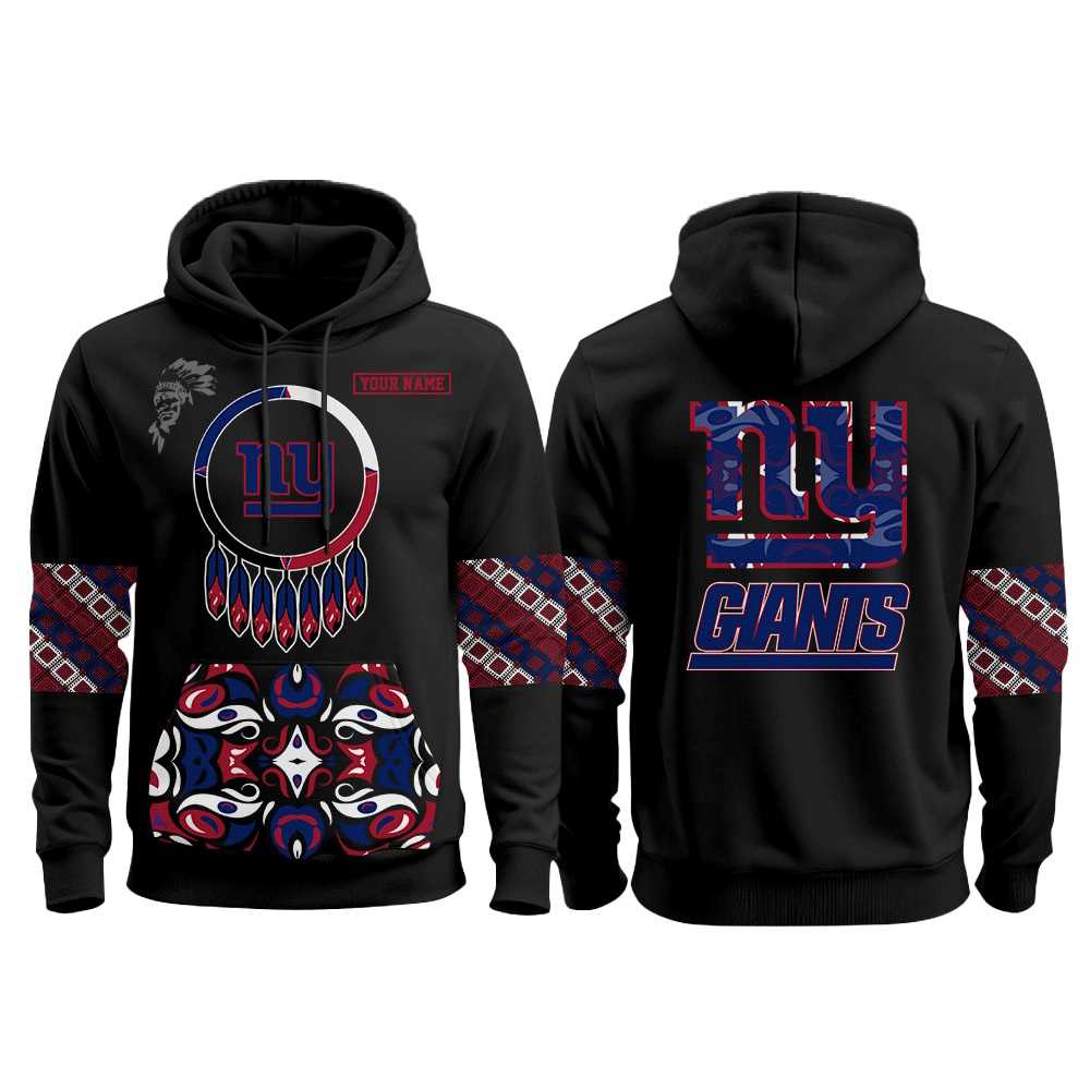 > Stand tall with the Giants and honor a powerful heritage with our New York Giants Native American Heritage Month Hoodie. This striking design skillfully blends the iconic blue and red of the Giants with intricate, respectfully inspired Native American artwork. Envision the classic “NY” logo surrounded by or integrated with patterns that reflect strength, resilience, and community – perhaps stylized eagles, bear claws, or geometric designs that echo traditional artistry. The patterns often incorporate a sense of dynamic movement and profound connection to ancestral wisdom, creating a hoodie that is both visually captivating and deeply meaningful. This is more than just fan gear; it’s a celebration of enduring spirit and cultural depth. Crafted for comfort and built to last, it’s ideal for showing your team allegiance on brisk autumn days or any time you want to make a statement of pride. Go Big Blue and celebrate big heritage! Make a powerful statement. Order your New York Giants Native American Heritage Month Hoodie today and wear your pride!. Our New York Giants Native American Heritage Month Hoodie meets all of your needs: it’s warm and cozy, lightweight and roomy, and built to last. It features dropped shoulders and a standard fit to offer a high level of comfort and ease of movement.