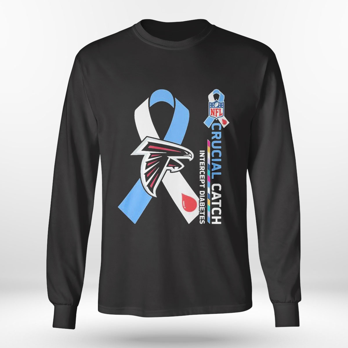 Nfl Atlanta Falcons Crucial Catch Intercept Diabetes Shirt Longsleeve T-shirt is a stylish, comfy shirt. Made of 100% cotton, it is cool and soft and keeps you cool in summer days. This edgy shirt comes in different colors, but the black stands out the most and matches with everything. It has many uses like casual wear, party wear, office wear and much more. Product details: