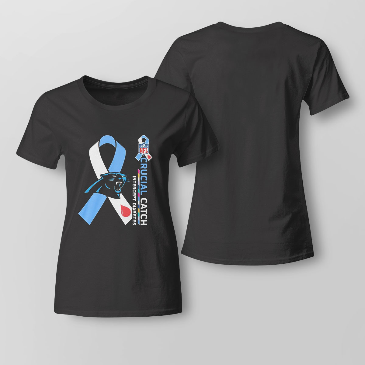 Nfl Carolina Panthers Crucial Catch Intercept Diabetes Shirt Longsleeve T-shirt is a stylish, comfy shirt. Made of 100% cotton, it is cool and soft and keeps you cool in summer days. This edgy shirt comes in different colors, but the black stands out the most and matches with everything. It has many uses like casual wear, party wear, office wear and much more. Product details: