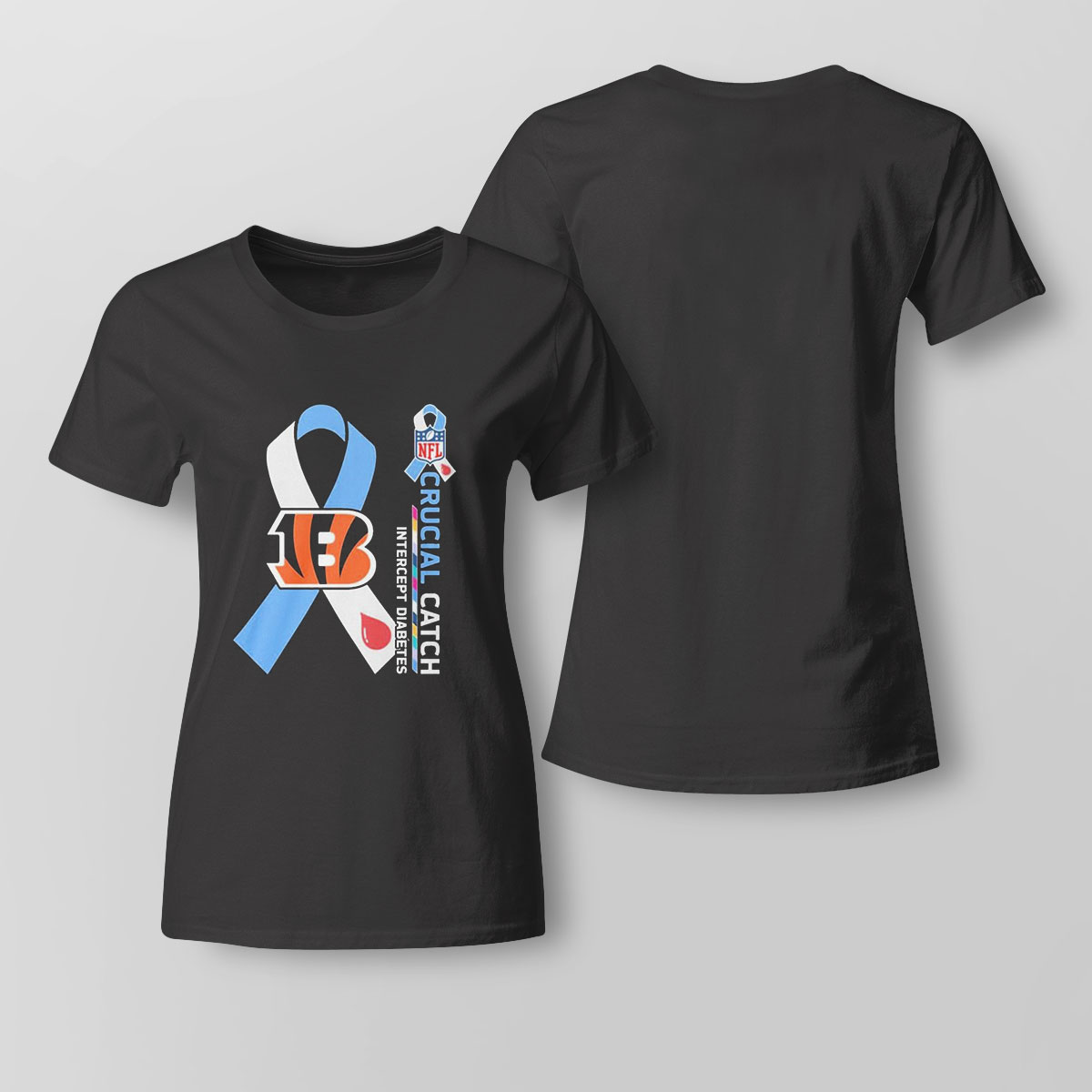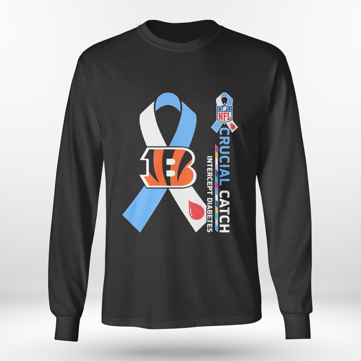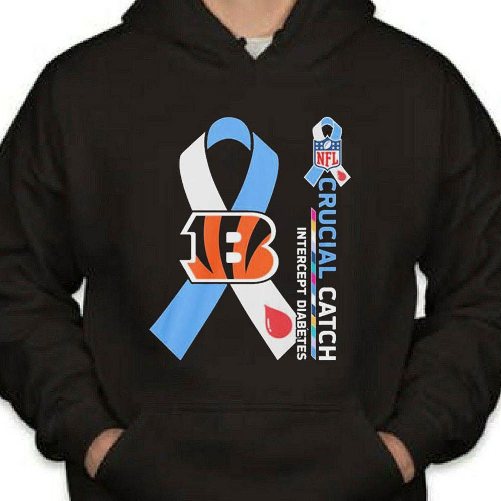 Nfl Cincinnati Bengals Crucial Catch Intercept Diabetes Shirt Longsleeve T-shirt is a stylish, comfy shirt. Made of 100% cotton, it is cool and soft and keeps you cool in summer days. This edgy shirt comes in different colors, but the black stands out the most and matches with everything. It has many uses like casual wear, party wear, office wear and much more. Product details:
