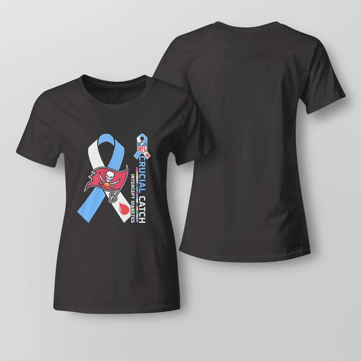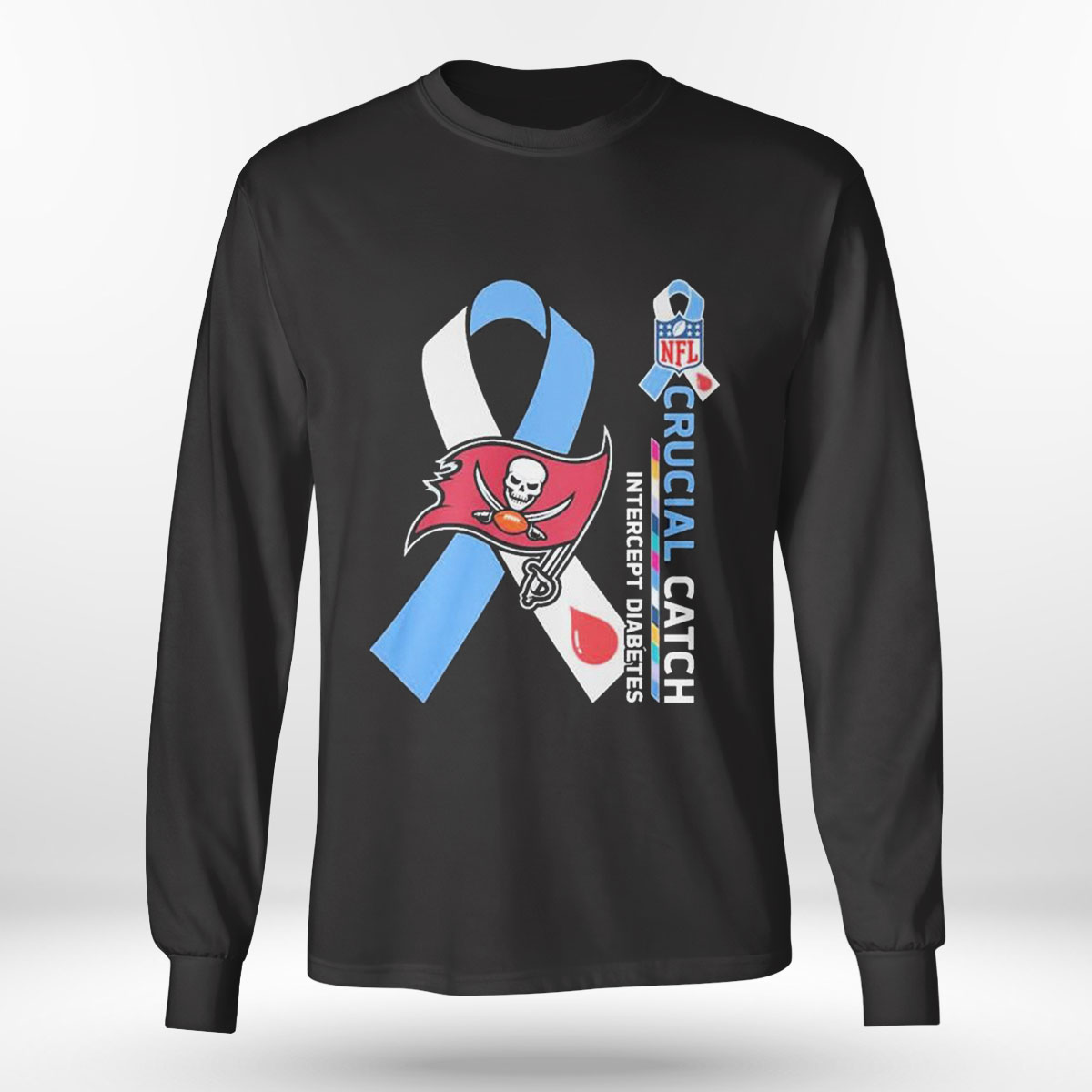 Nfl Tampa Bay Buccaneers Crucial Catch Intercept Diabetes Shirt Longsleeve T-shirt is a stylish, comfy shirt. Made of 100% cotton, it is cool and soft and keeps you cool in summer days. This edgy shirt comes in different colors, but the black stands out the most and matches with everything. It has many uses like casual wear, party wear, office wear and much more. Product details: