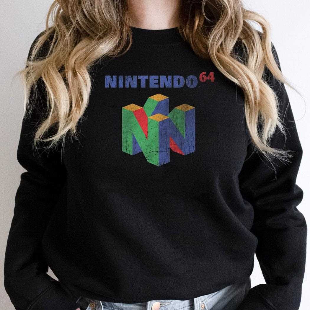 Level Up Your Style! Take a nostalgic trip down memory lane with the Nintendo Classic N64 T-shirt. This iconic design proudly features the unmistakable logo of the Nintendo 64 console, perhaps accompanied by classic game elements or controllers. It’s a powerful symbol of a golden era in gaming, instantly recognizable and cherished by millions. This shirt isn’t just clothing; it’s a badge of honor for veteran gamers and a stylish nod to the console that brought us countless hours of joy. Made from soft, durable cotton, it’s perfect for gaming sessions, casual outings, or showing off your retro gaming pride. Press start on nostalgia! Grab the Nintendo Classic N64 T-Shirt and relive the glory days!. T-shirt !