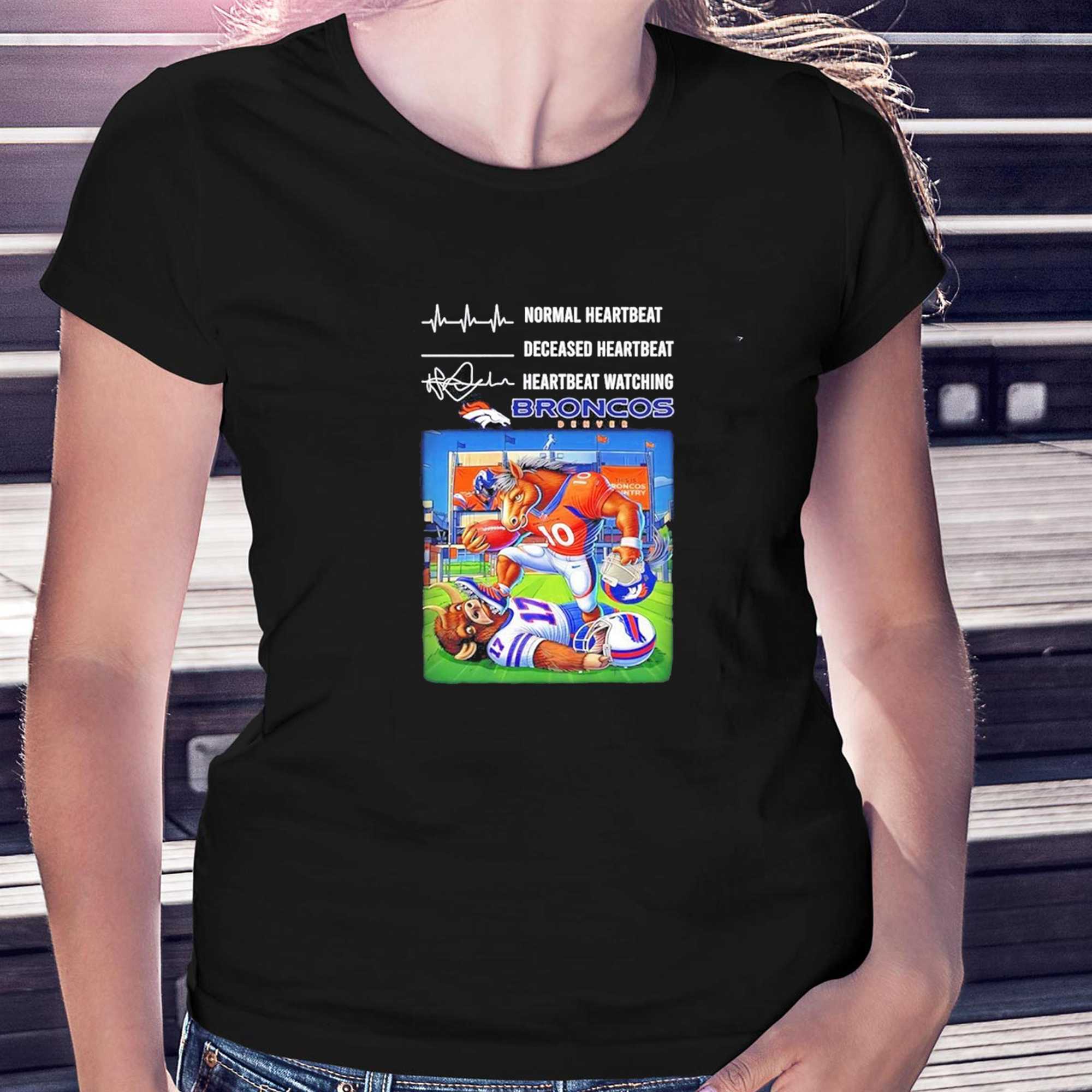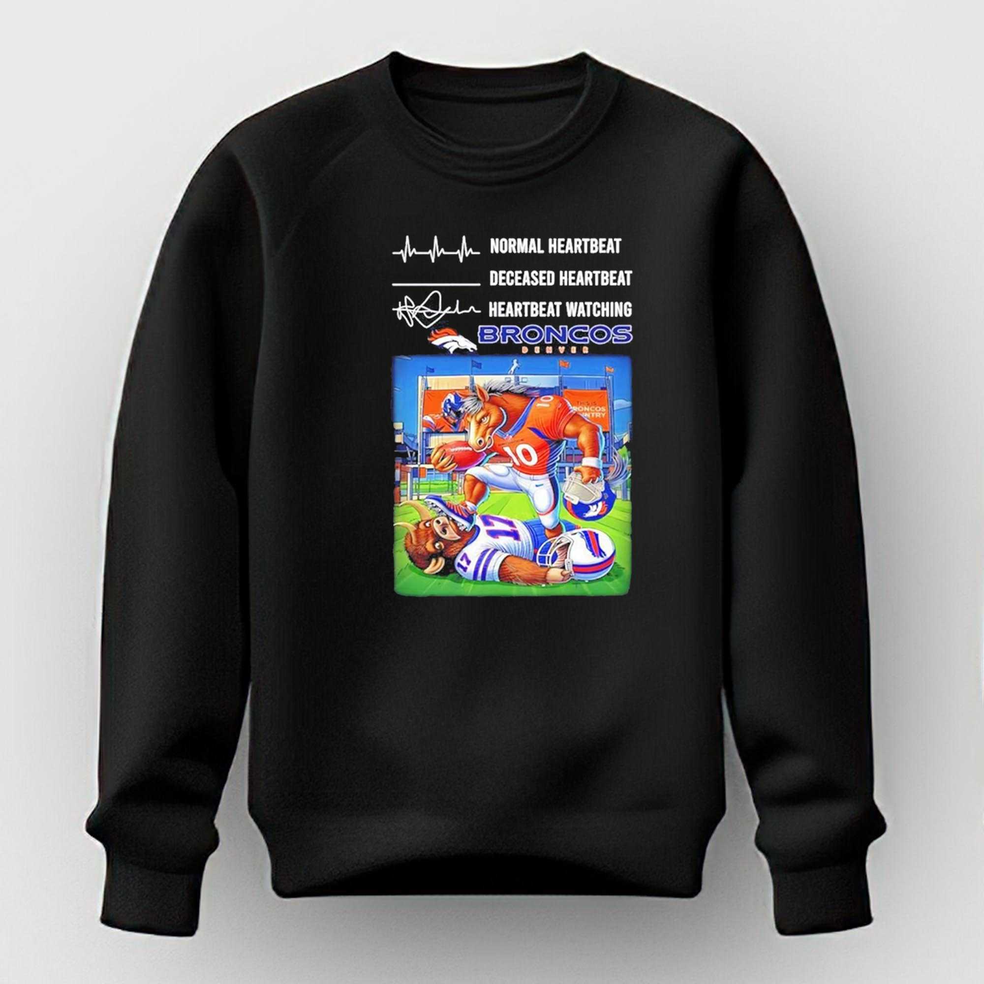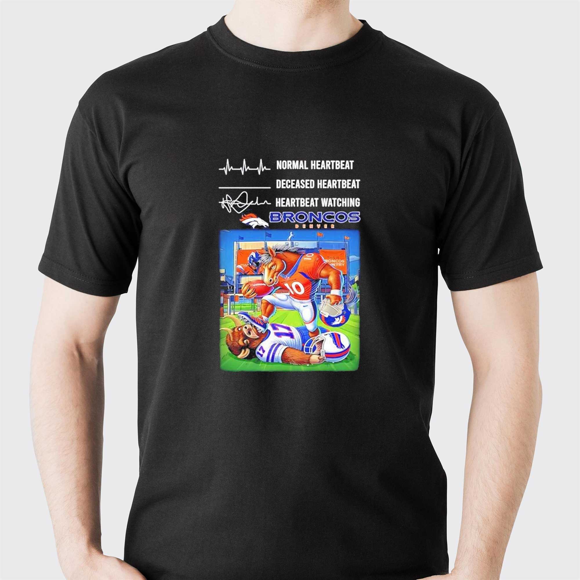 Normal Heartbeat Deceased Heartbeat Heartbeat Watching Denver Broncos 2026 Afc Divisional Playoffs Mascot Tee