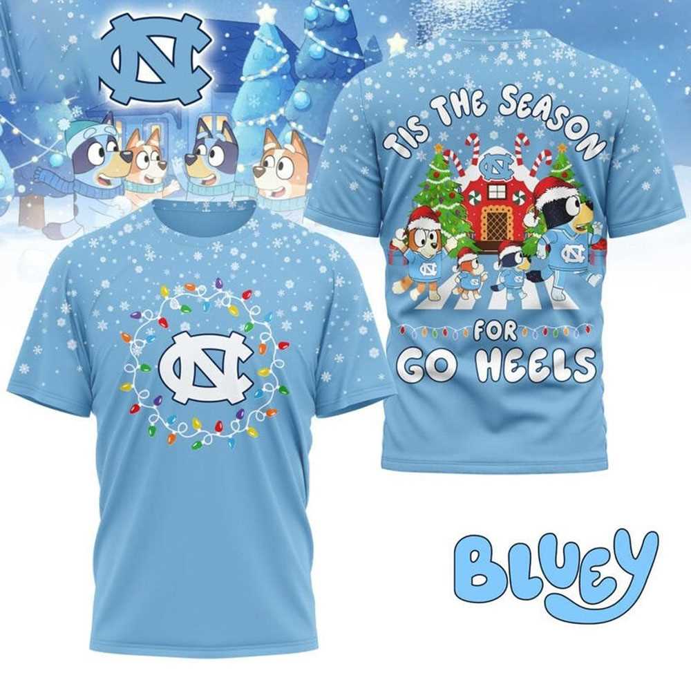 North Carolina Tar Heels Bluey Tis The Season For Go Heels Christmas 2025 Shirt