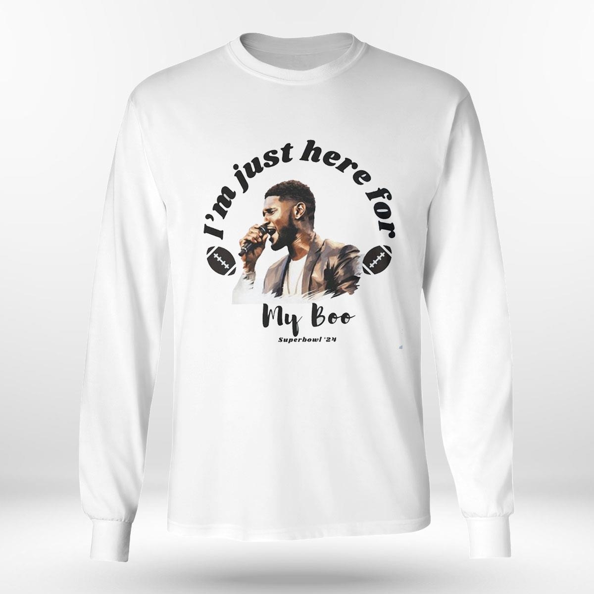 Don’t miss out on the opportunity to be part of this momentous occasion. Grab your official “I’m Just Here For My Boo Usher Halftime Show” t-shirt now and join thousands of fans in celebrating one of music’s biggest stars..