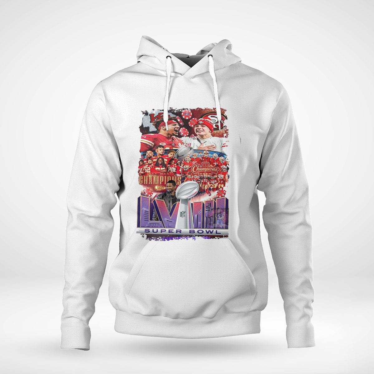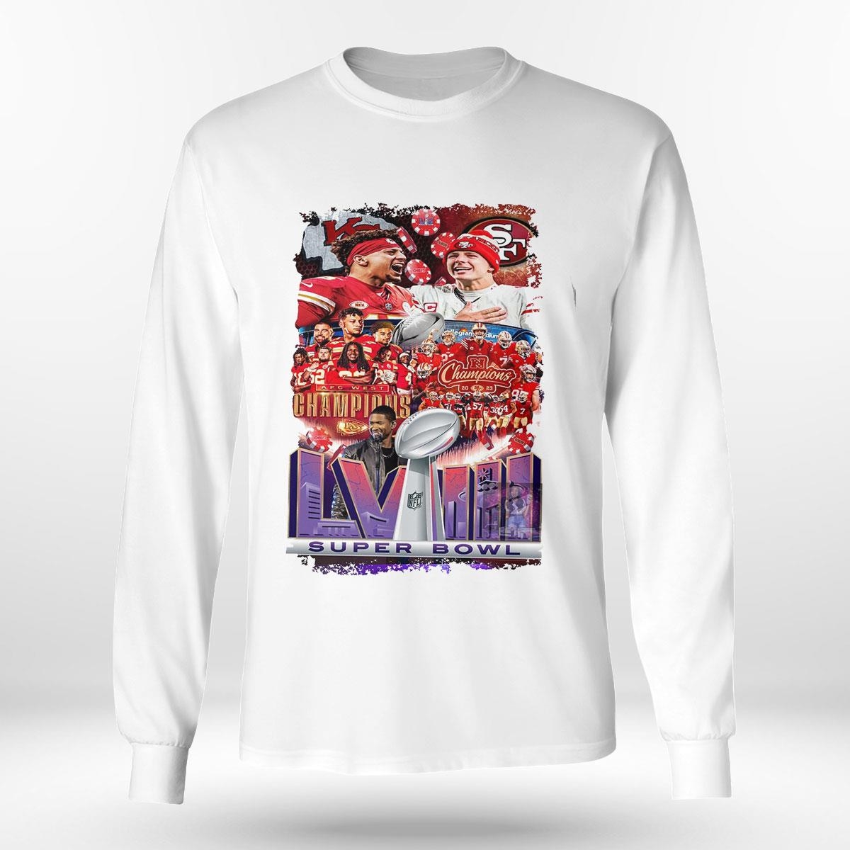 .Welcome to the official Super Bowl LVIII San Francisco 49ers vs Kansas City Chiefs matchup usher show shirt section! Get ready to show your support for your favorite team with our exclusive and officially licensed merchandise.