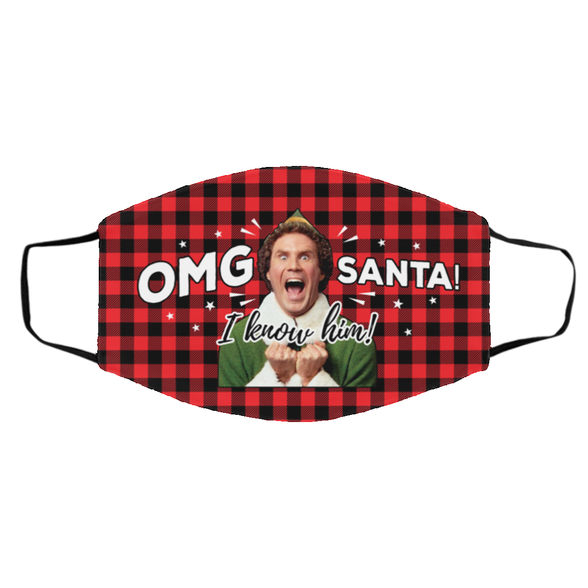 OMG Santa I Know Him Buffalo Plaid Face Mask