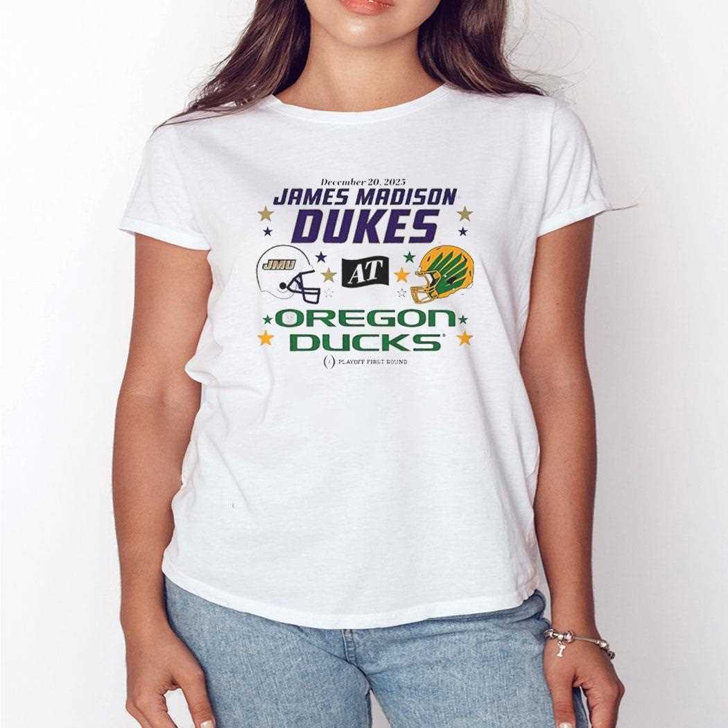 Oregon Ducks And Jmu Dukes 2025 Cfp Helmets Tee