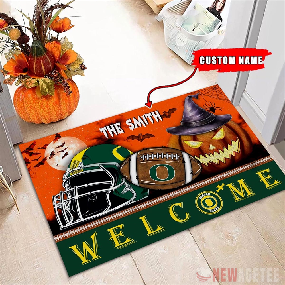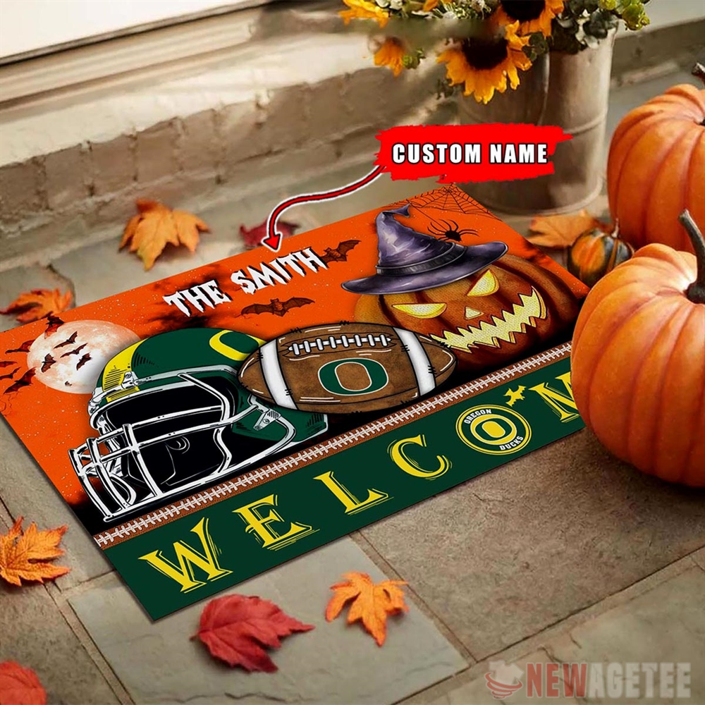 Oregon Ducks Welcome Football Halloween Doormat Custom Name