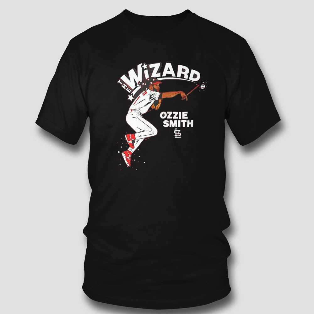 Celebrate the “Wizard of Oz” and one of the most exciting players in the history of the St. Louis Cardinals with a design that captures his magic. The Ozzie Smith St. Louis Cardinals Caricatures Tee features a vibrant, high-energy caricature of the legendary shortstop in his signature backflip pose. This design pays tribute to the incredible athleticism and charisma that made Ozzie a fan favorite and a Hall of Fame icon. With the word “WIZARD” emblazoned in a classic, magical font and his iconic #1 jersey prominently displayed, this shirt is a masterclass in sports nostalgia. The bright Cardinals red and white pop against the black fabric, creating a look that is both sporty and artistic. This tee is perfect for any Cardinals fan who remembers the thrill of watching Ozzie defend the infield with unparalleled grace and skill. Made from high-quality, soft-touch cotton, it offers a comfortable, classic fit that is perfect for a day at Busch Stadium or just showing off your baseball heritage around town. It’s more than just a shirt; it’s a celebration of a man who brought magic to the game and joy to millions of fans. Honor the legacy of a true baseball legend and add a touch of wizardry to your wardrobe. Score a home run for your collection. Order your Ozzie Smith St. Louis Cardinals Caricatures Tee today and feel the magic!.
