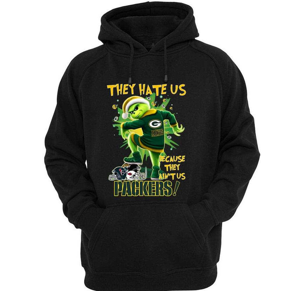 .Introducing the ultimate statement piece for any true Packers fan: the “Grinch They Hate Us Because They Ain’t Us” sweatshirt. This isn’t just another piece of fan apparel; it’s a bold declaration of loyalty and pride that showcases your unwavering support for the Green Bay Packers.