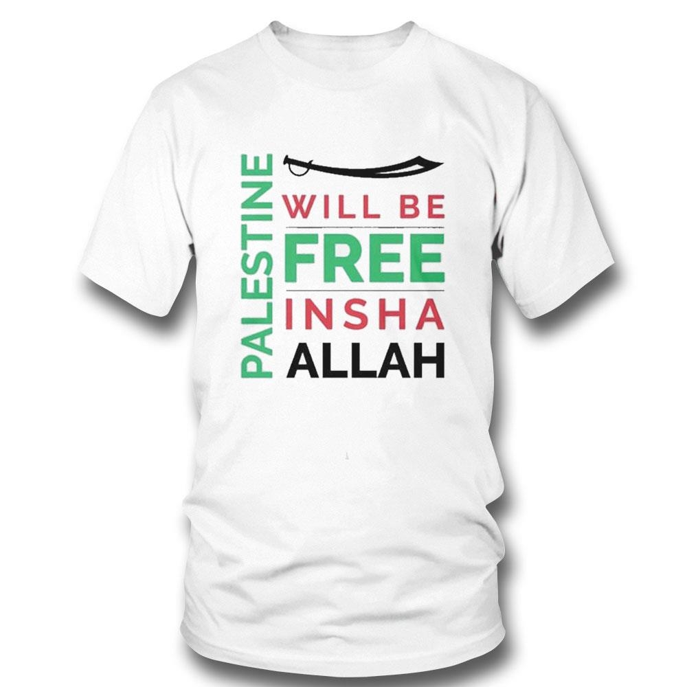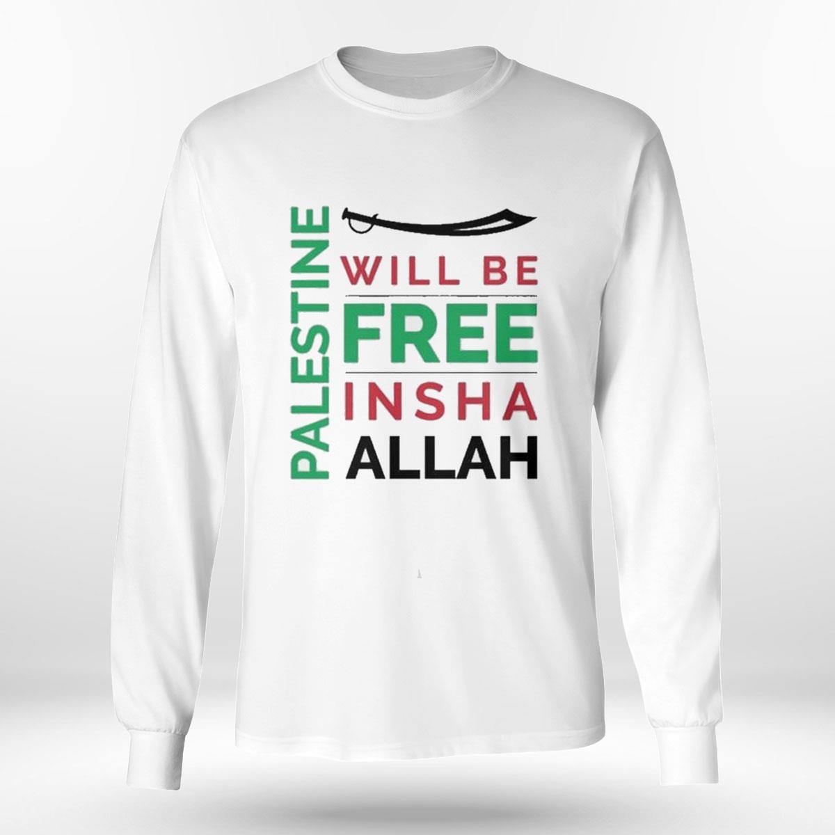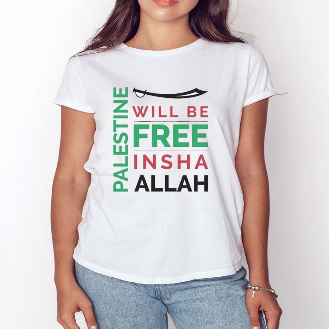 Wearing this shirt is more than just a fashion statement; it is a declaration of your support for the Palestinian cause. It sends a strong signal that you stand with the Palestinian people against the oppression and occupation they have endured for decades. The inclusion of the “Inshallah” phrase, which means “God willing” in Arabic, adds a spiritual dimension to the message, reflecting the deep-rooted hope and faith that one day, Palestine will indeed be free.