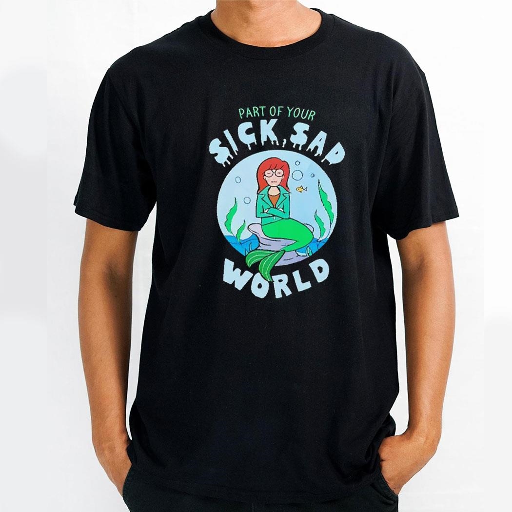 .The “Part Of Your Sick Sad World Daria Mermaid Shirt” is a must-have for any true fan of the iconic 90s animated series, Daria. This stylish and edgy shirt perfectly captures the sarcastic and cynical spirit of the show’s protagonist, making it a statement piece that will turn heads.