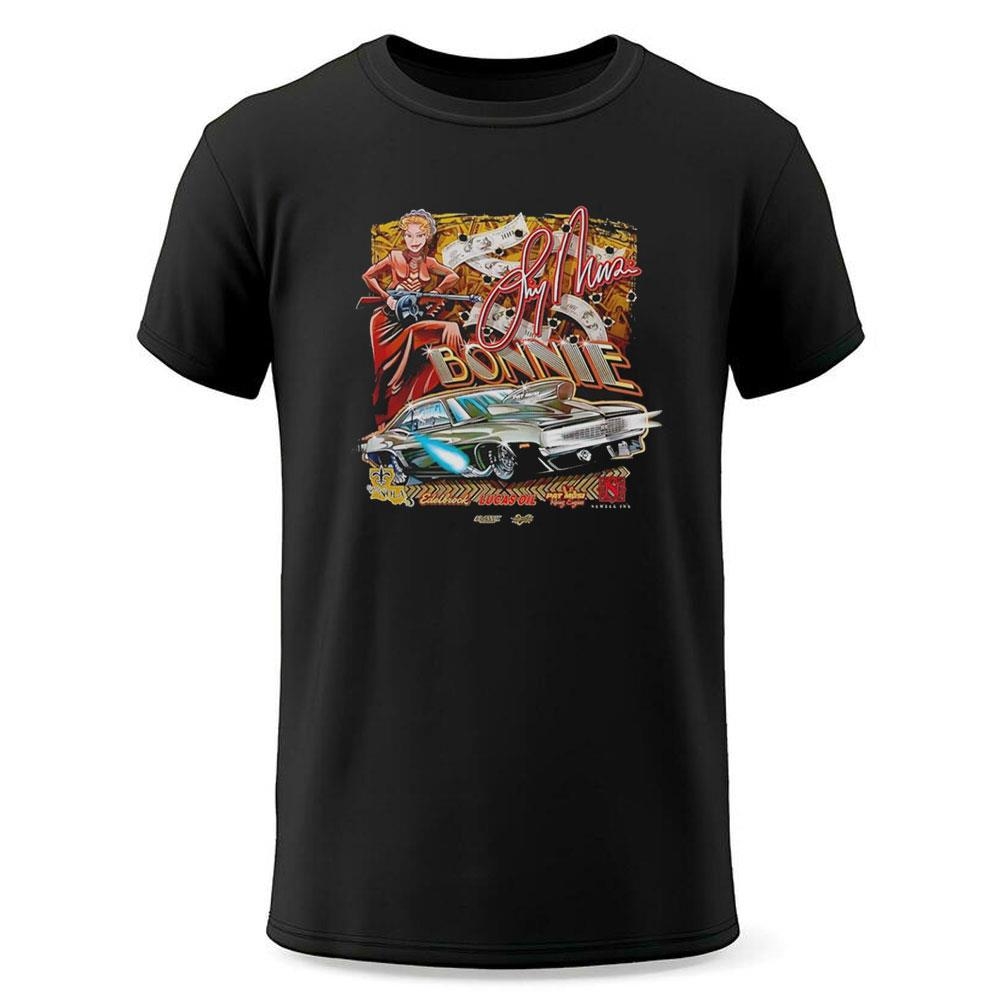 .The Pat Musi Racing Engines Bonnie Signature Graphic Shirt is a must-have for any true racing enthusiast. This striking design pays homage to the legacy of Pat Musi, a renowned name in the world of high-performance engines.
