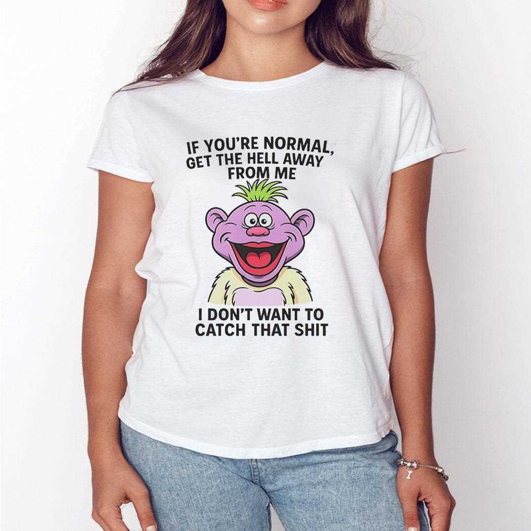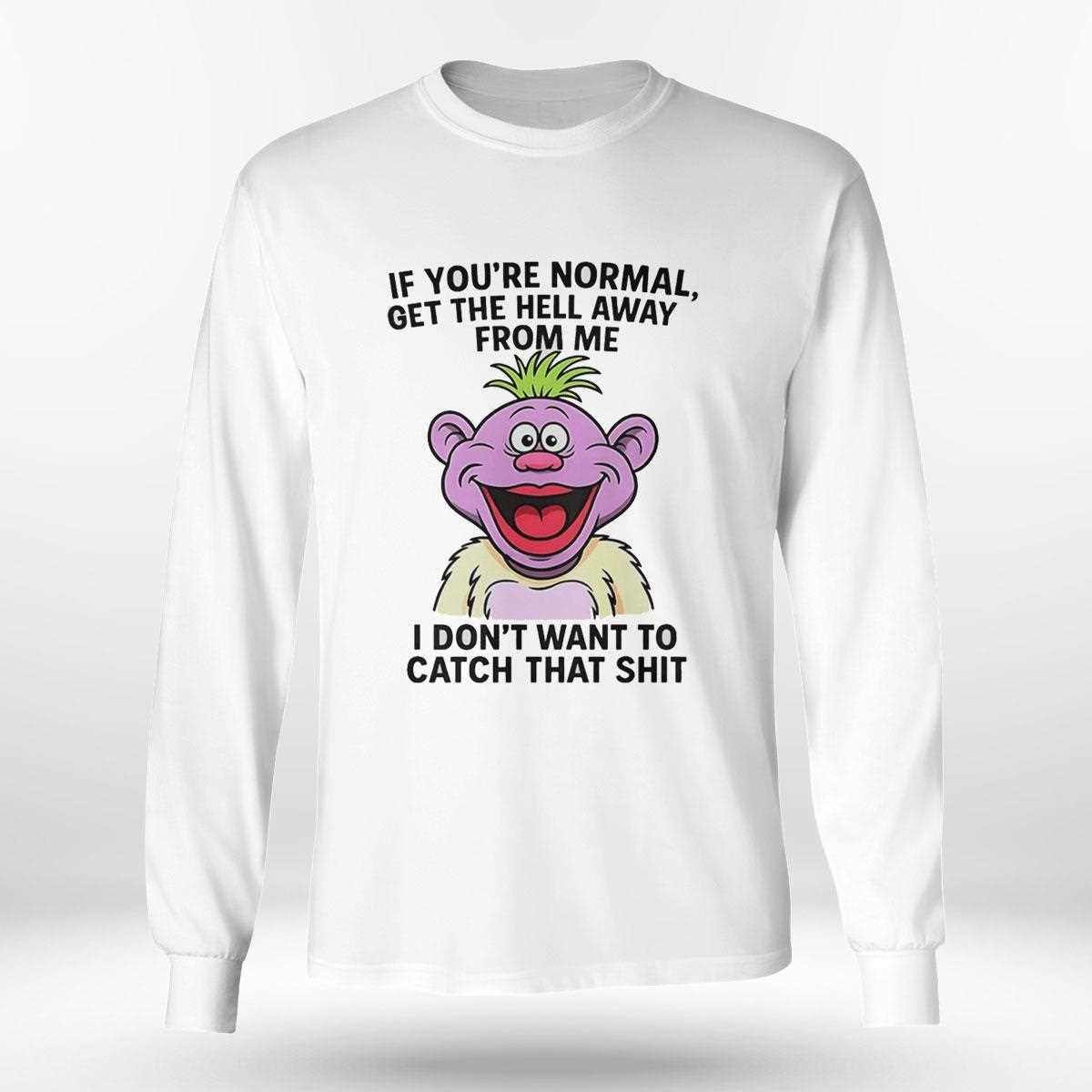 Unleash your inner eccentric with the help of everyone’s favorite purple puppet, Peanut! This hilarious design captures Peanut in his most iconic, wide-eyed “crazy” expression, perfectly matching the sassy and blunt message: “If You’re Normal, Get The Hell Away From Me.” The text is vibrant and playful, utilizing a variety of fun fonts that mirror Peanut’s chaotic energy. The bright colors of the character pop against the white fabric, ensuring that your sense of humor is seen from across the room. This shirt is for the people who embrace their quirks and have no time for the mundane. It’s the perfect icebreaker for comedy fans and anyone who believes that “normal” is just a setting on a dryer. Comfortable, funny, and full of personality, it’s a true Jeff Dunham fan favorite. Don’t let ‘normal’ rub off on you—warn the world and buy your Peanut Jeff Dunham If Youre Normal Get The Hell Away From Me I Dont Want To Catch That Shit Tee today!. T-shirt !
