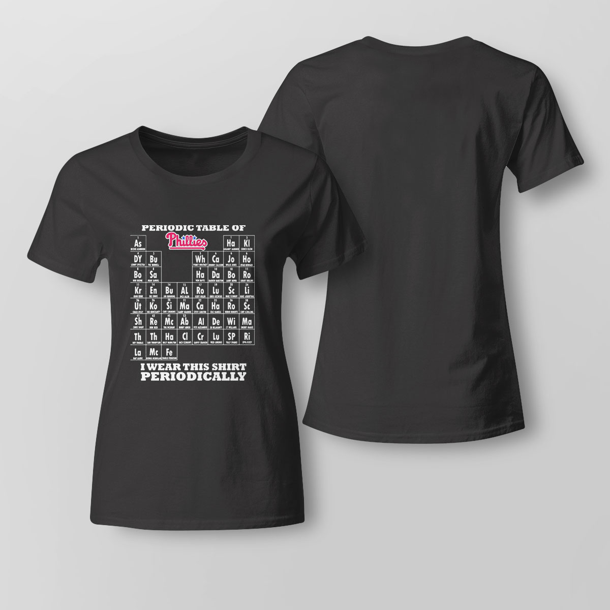 If you’re searching for a Periodic Table Of Phillies I Wear This Shirt Periodically T-shirt that can offer both a soft feel and breathability to keep you comfortable on sweltering summer days, look no further. Our 100% cotton T-shirt is the answer to your wardrobe woes. Made from soft, breathable cotton, it will keep you comfortable and chic throughout the season. Not only is it easy to wear, but it’s also easy to care for – simply toss it in the washing machine and dry it on low heat, and it will look brand new. It’s also an excellent option for those with sensitive skin, thanks to its natural hypoallergenic properties. You don’t have to take our word for it – give it a try and see for yourself! Purchase your cotton T-shirt today and add a touch of comfort and style to your casual or dressed-up looks. Don’t wait any longer, add it to your cart and experience the benefits of our 100% cotton T-shirt !