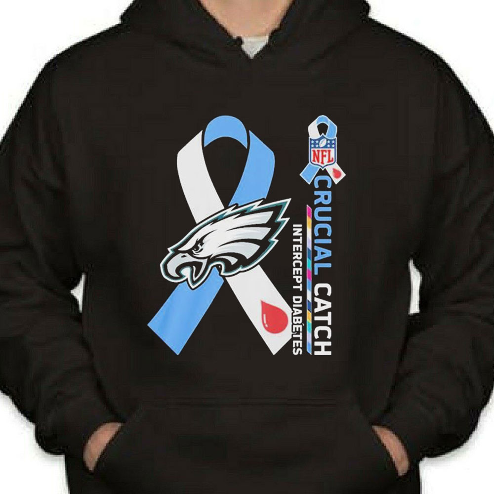 Philadelphia Eagles Crucial Catch Intercept Diabetes Nfl Logo Shirt Longsleeve T-shirt is a stylish, comfy shirt. Made of 100% cotton, it is cool and soft and keeps you cool in summer days. This edgy shirt comes in different colors, but the black stands out the most and matches with everything. It has many uses like casual wear, party wear, office wear and much more. Product details: