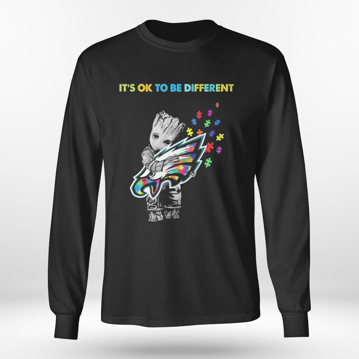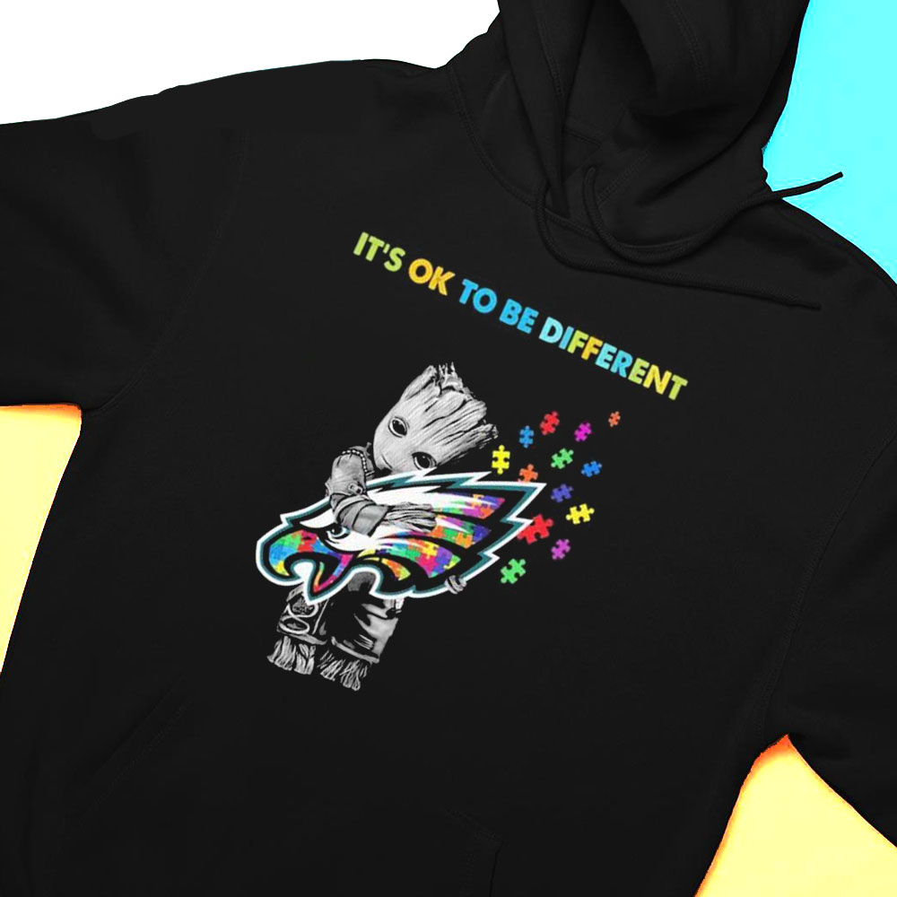 Philadelphia Eagles Groot Hug Autism Its Ok To Be Different Shirt