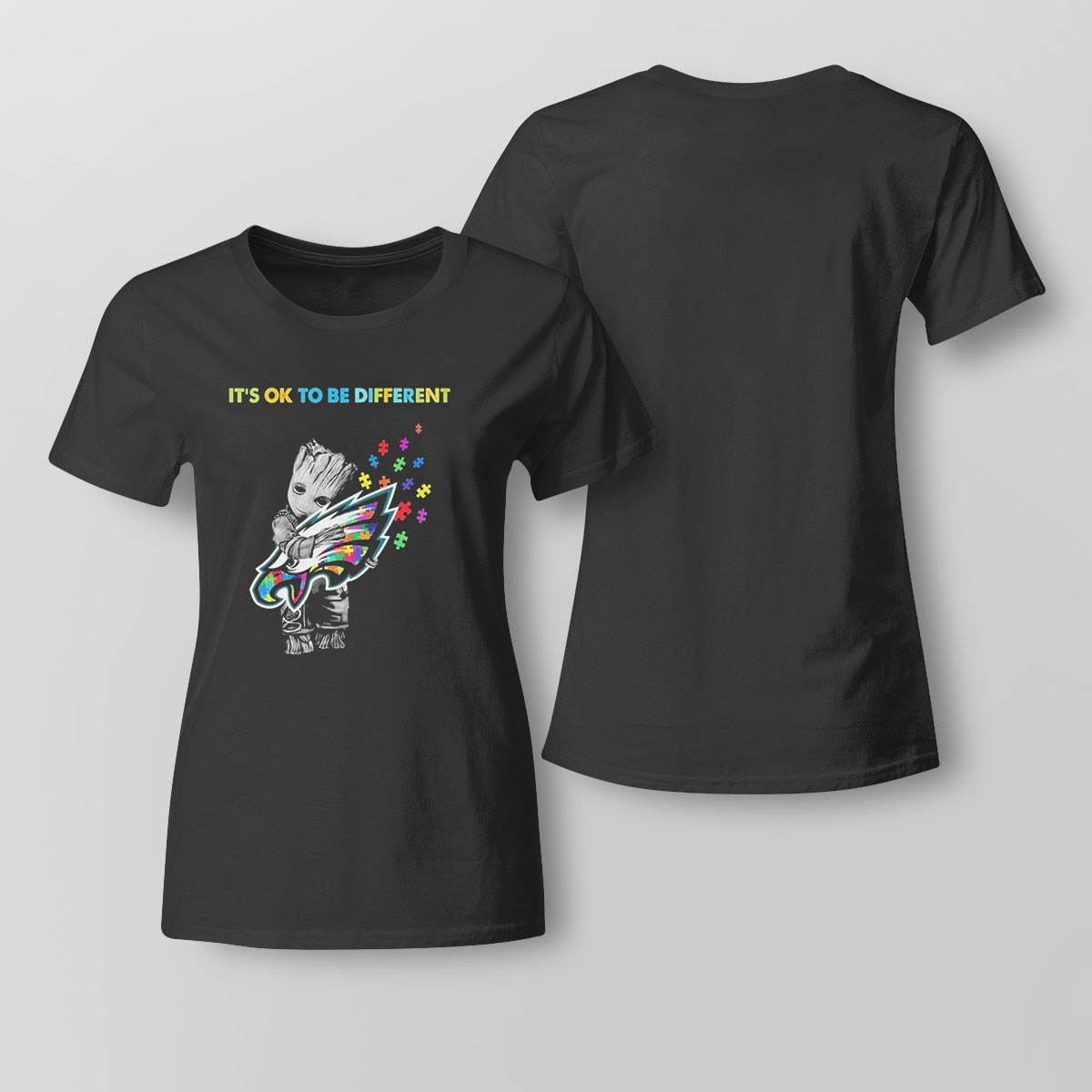 So why wait? Show your support for the Eagles and for autism awareness with the Philadelphia Eagles Groot Hug Autism It’s Ok To Be Different Shirt. Order yours today!. Our 100% cotton T-shirt is the answer to your wardrobe woes. Made from soft, breathable cotton, it will keep you comfortable and chic throughout the season. Not only is it easy to wear, but it’s also easy to care for – simply toss it in the washing machine and dry it on low heat, and it will look brand new. It’s also an excellent option for those with sensitive skin, thanks to its natural hypoallergenic properties. You don’t have to take our word for it – give it a try and see for yourself! Purchase your cotton T-shirt today and add a touch of comfort and style to your casual or dressed-up looks. Don’t wait any longer, add it to your cart and experience the benefits of our 100% cotton T-shirt !
