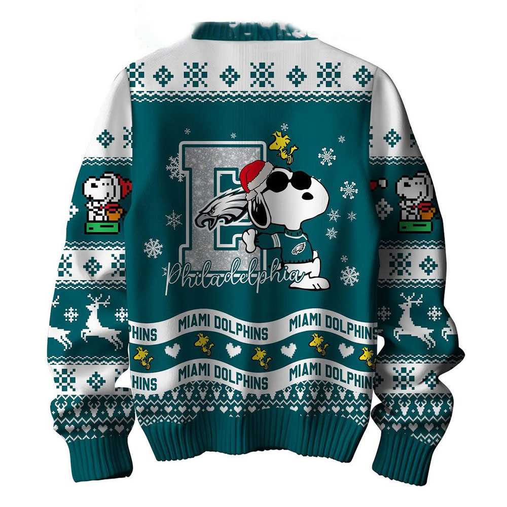 Philadelphia Eagles Snoopy Woodstock Puffer Jacket Ugly Christmas Sweater