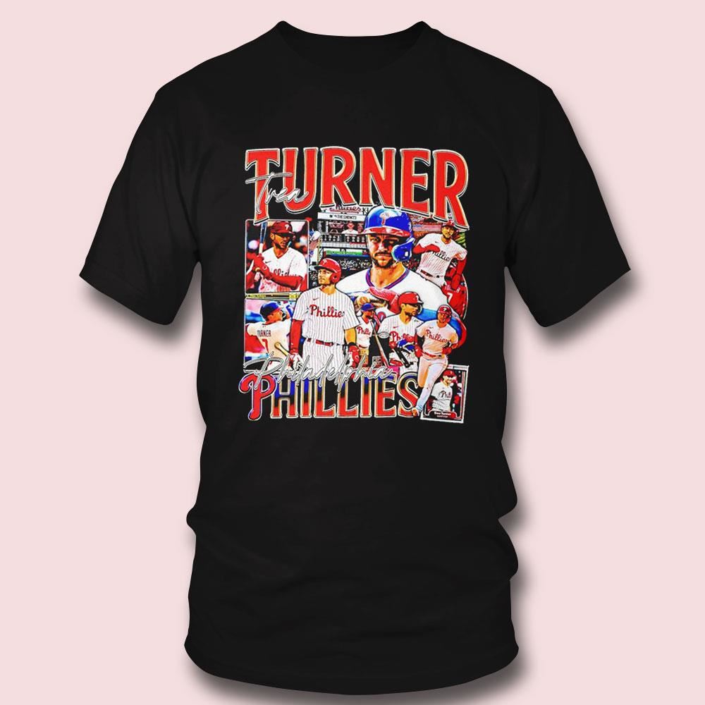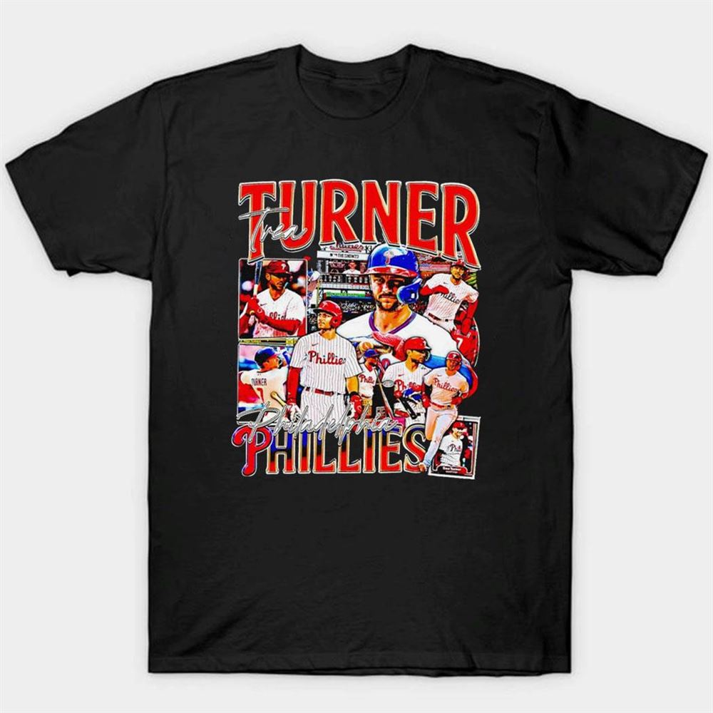Introducing the Phillies Trea Turner Philadelphia T-shirt – a must-have for all baseball fans and supporters of the Philadelphia Phillies! Show your love for both the team and one of its star players, Trea Turner, with this stylish and eye-catching t-shirt.