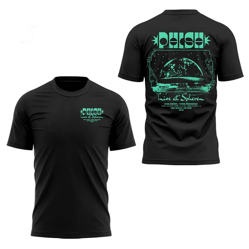 Get ready for the ultimate jam band experience with the Phish Summer Tour 2026 Tee Hoodie, a piece of apparel that captures the psychedelic and adventurous spirit of the band’s live performances. The front features a minimalist tour logo on the chest, while the back is a canvas for a stunning, green-and-teal cosmic landscape graphic that mirrors the visual intensity of a Phish light show. The 2026 tour dates are subtly integrated into the artwork, making it a true collector’s item.This tee-hoodie hybrid is crafted from a breathable, high-quality jersey material, offering the lightweight comfort of a t-shirt with the added style of a hood. It’s perfect for layering at outdoor festivals or wearing during a casual summer evening. The black fabric is chosen to make the vibrant green graphics “glow,” creating a visually arresting look that resonates with the Phish community’s unique aesthetic.The construction features a modern fit that is easy to wear, with reinforced seams for long-lasting durability through every tour stop. It’s more than just a shirt; it’s a wearable memory of the music and the community that makes Phish legendary.Join the tour and grab your Phish Summer Tour 2026 Tee Hoodie today to celebrate the music that never stops!