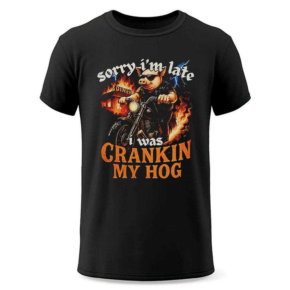 Moreover, wearing such an unconventional piece can spark interesting conversations and connections with like-minded individuals who appreciate humor in fashion. So why settle for ordinary when you can embrace the extraordinary? Make your wardrobe memorable with the “Pig Sorry I’m Late I Was Cranking My Hog” shirt—it’s not just clothing; it’s an attitude!.