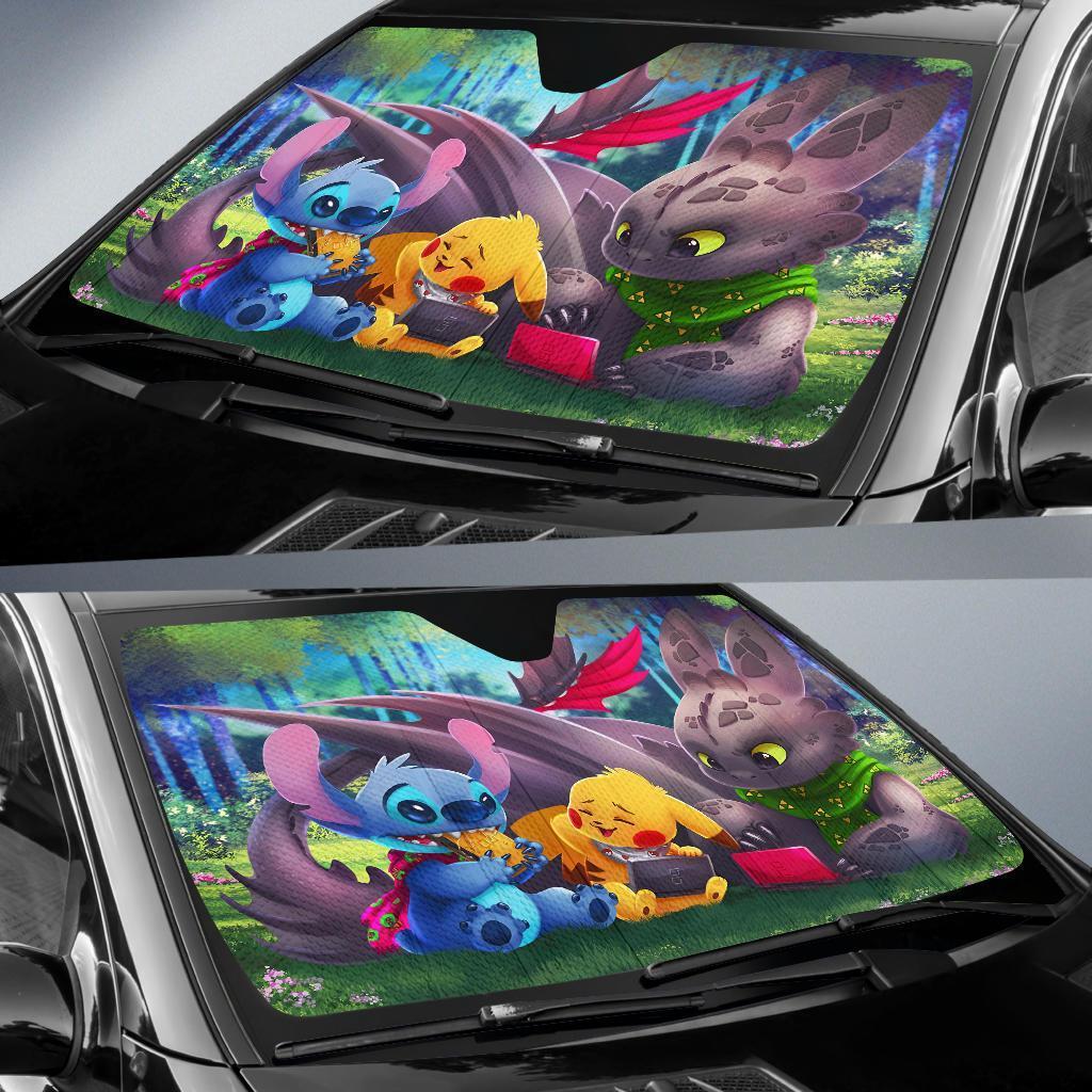 - The lightweight and compact Pikachu Toothless Stitch Car Auto Sunshade is an essential accessory for all vehicles. Keep your car cool, but also protect the interior of your vehicle. If you’re looking for a cool summer accessory for your car, this is it!