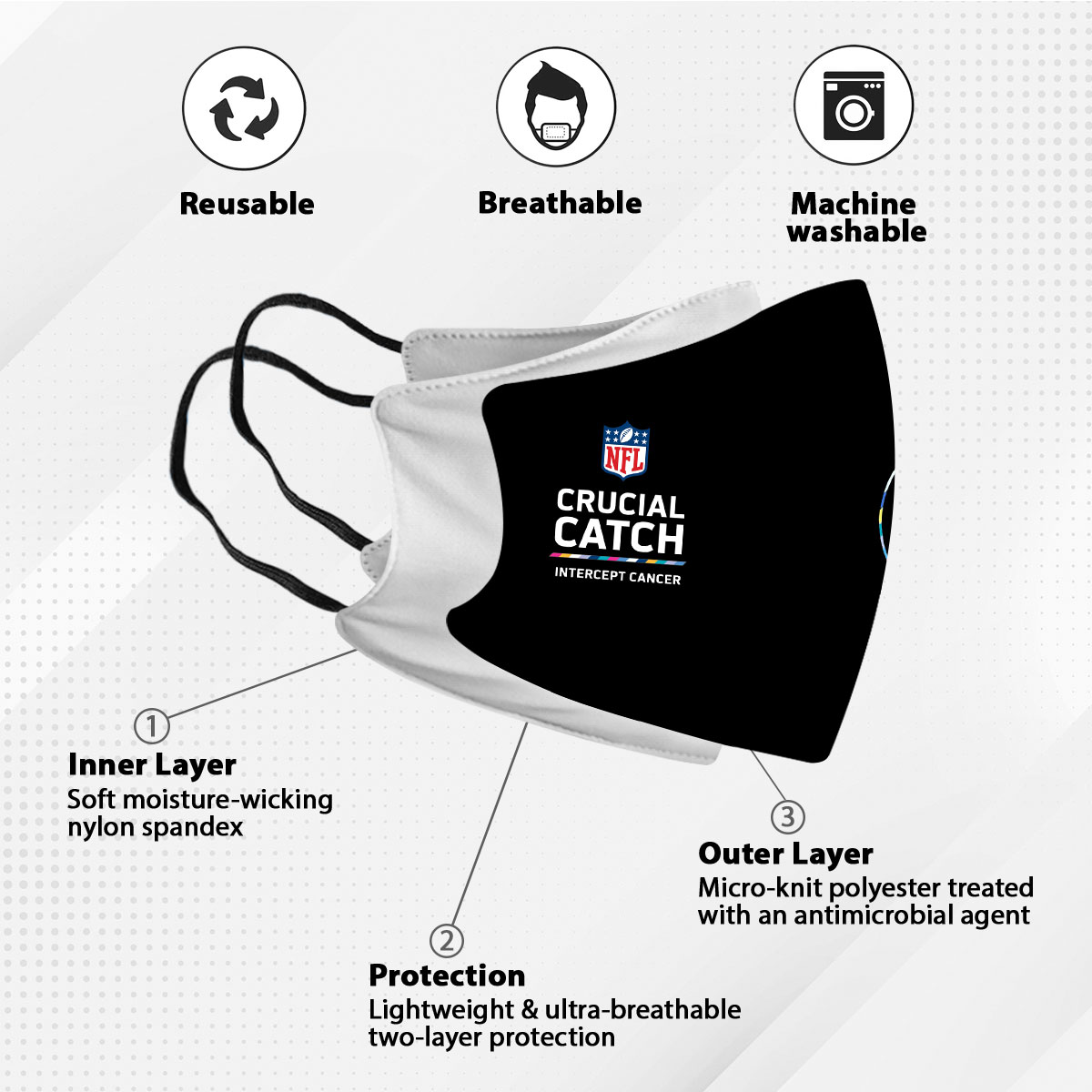- Reusable. Machine washable.