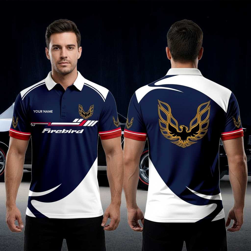 Pontiac Firebird White Blue Polo Shirt Custom