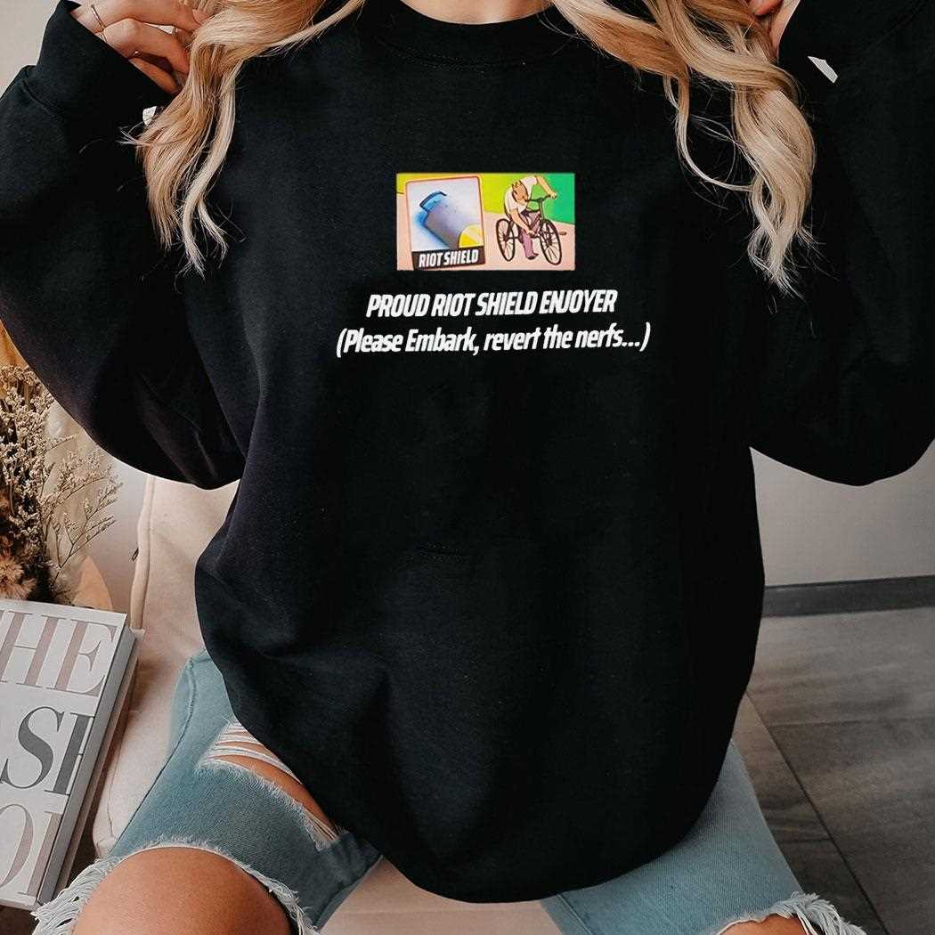 Proud Riot Shield Enjoyer Please Embark Revert The Nerfs Tee