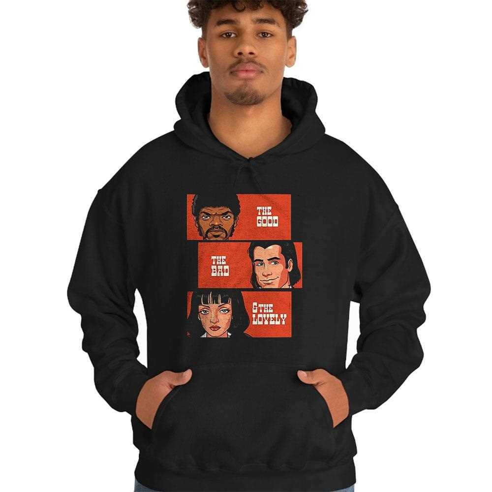 Don’t miss out on owning a piece of cinematic history—add the “Pulp Fiction The Good The Bad And The Lovely” shirt to your wardrobe today and let it reflect your passion for film in style!.