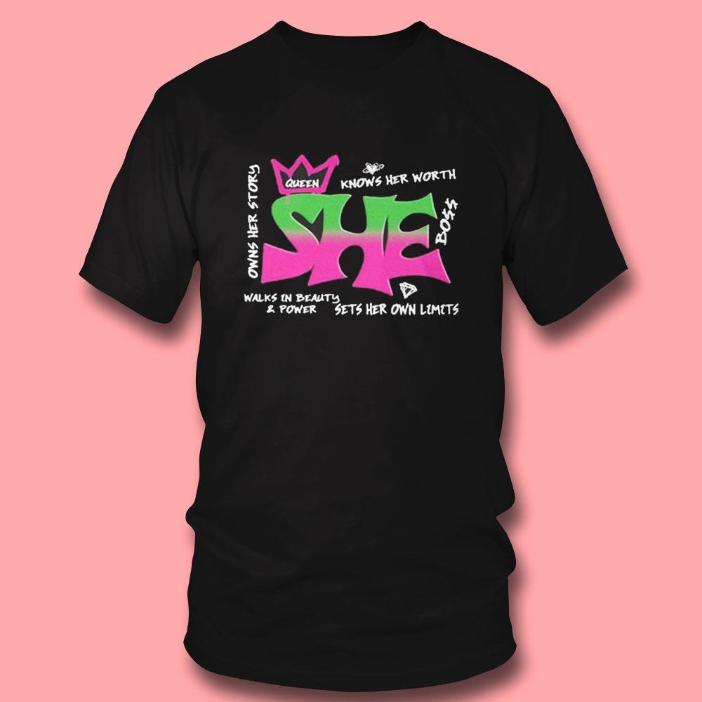 Queen Knows Her Worth She Boss Owns Her Story Walks In Beauty And Power Sets Her On Limits Shirt