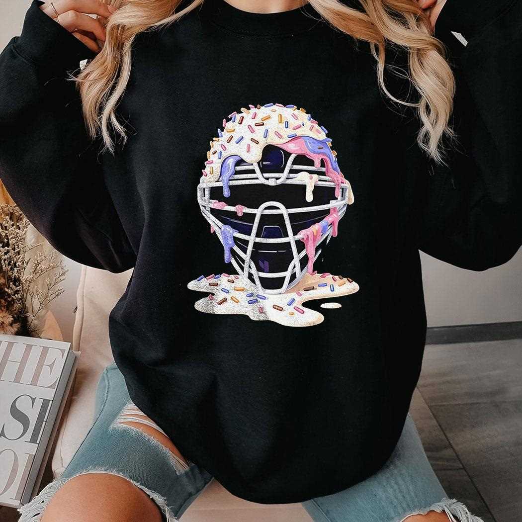 Step up to the plate with this wildly imaginative and artistic t-shirt. The surreal design features a baseball catcher’s mask overflowing with melting, sprinkle-covered ice cream, blending the grit of the game with sweet, whimsical artistry. It’s a unique masterpiece for those who think outside the batter’s box. Why be normal? If you love art that’s as unique as you are, this deliciously weird tee is a home run. Add this incredible conversation starter to your cart before it melts away!.