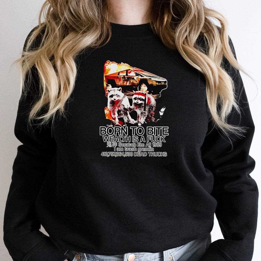 This shirt appeals not only to fans of quirky fashion but also to those who identify with the ‘trash gremlin’ aesthetic—a celebration of imperfection and authenticity. By donning this eye-catching design, you join a community that values creativity over conformity and encourages others to express themselves unapologetically. So why not make your wardrobe reflect your mindset? Grab your “Raccoon And Tesla Born To Bite Wealth Is A Fck I Am Trash Gremlin 1989 Shirt” today and wear it proudly as you navigate through life’s complexities!.