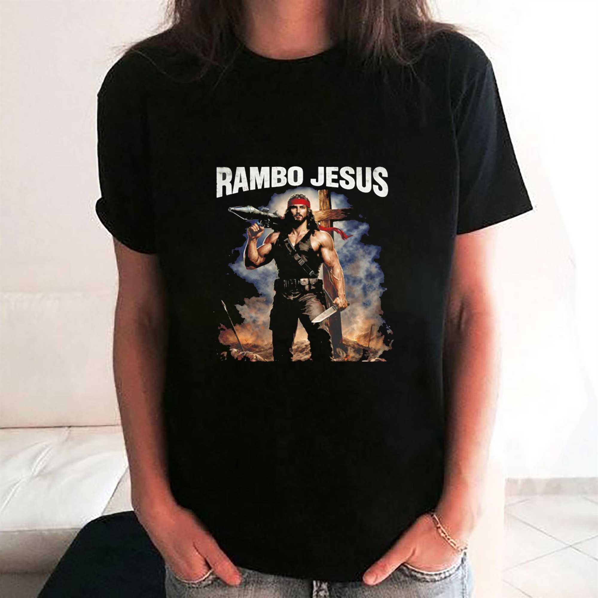 Show the world where your true allegiance lies and let your clothing reflect your integrity and your voice. Stand for something meaningful and wear your heart on your chest. secure your piece of the vision and buy the Rambo Jesus Tee right now to lead the charge!