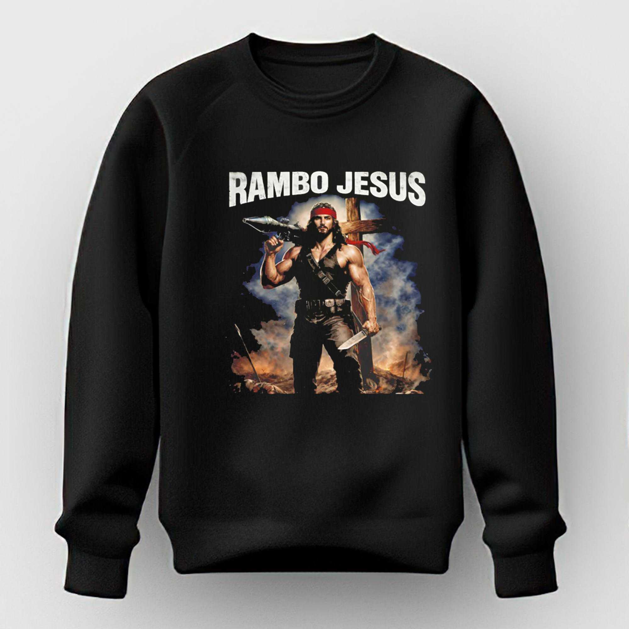 Merge the world of high-octane action cinema with a bold spiritual twist in the Rambo Jesus Tee. This design is a brilliant piece of satirical art, featuring a high-contrast, atmospheric illustration of a savior figure reimagined in a classic guerrilla warfare aesthetic. It captures the spirit of resilience and the uncompromising heart of a fighter, utilizing a palette of deep reds and blacks that scream alternative culture and cinematic grit. This isn’t just a t-shirt; it’s a powerful tool for conversation and a signal of one’s uncompromising values, designed for those who navigate the world with a sharp sense of irony.